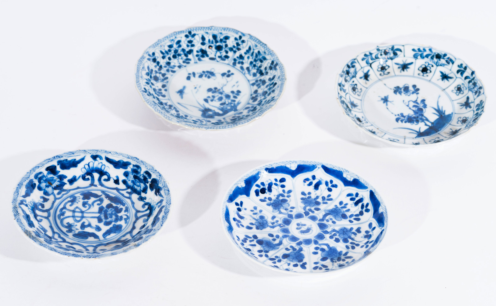 Arte Cinese Lotto di quattro piattini in porcellana bianco blu Cina, periodo...