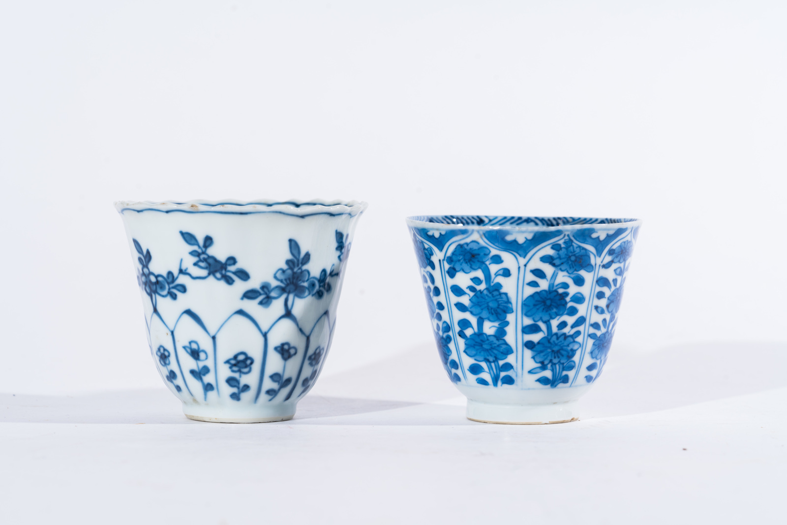 Chinese Art Two blue and white porcelain cups painted with floral design