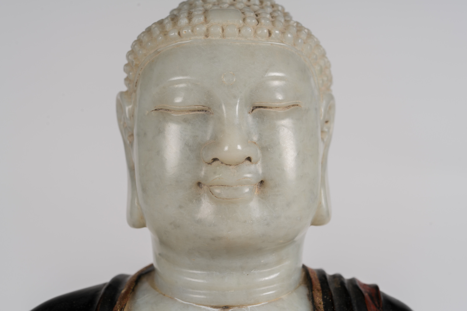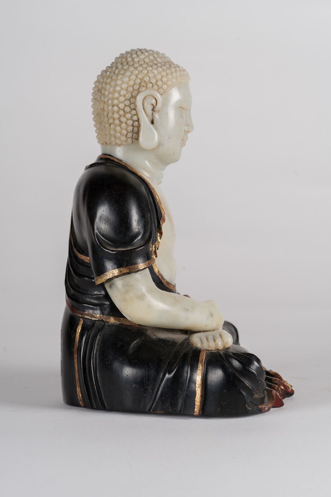 Chinese Art A wooden Buddha with soapstone inserts China, Qing dynasty, 19th century . . Cm 20,00 x 26,00.