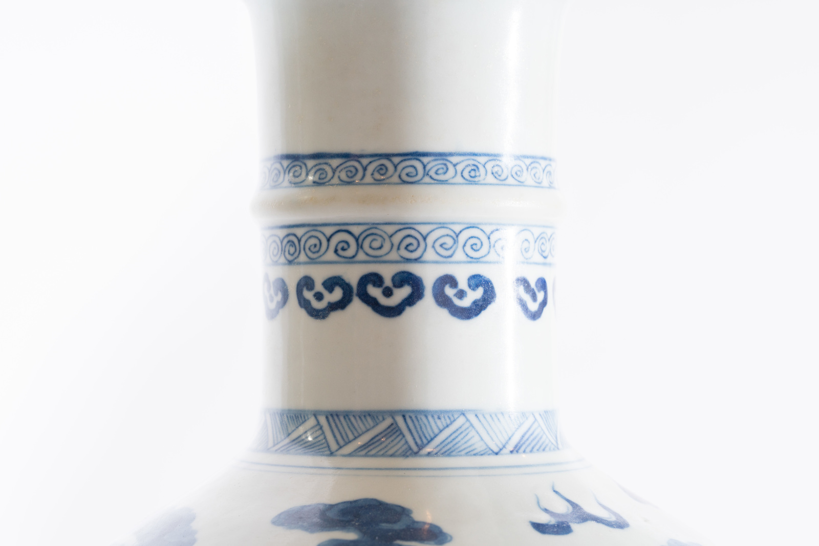 Chinese Art A blue and white porcelain vase painted with a dragon among clouds and waves