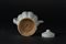 Cina, dinastia Song . -. Cm 10,50 x 9,50. Poggiante su disco stampato con petali stilizzati, il corpo costolato terminante con piccole perline stampate in prossimità del tappo. Completa di tappo a cupola.
