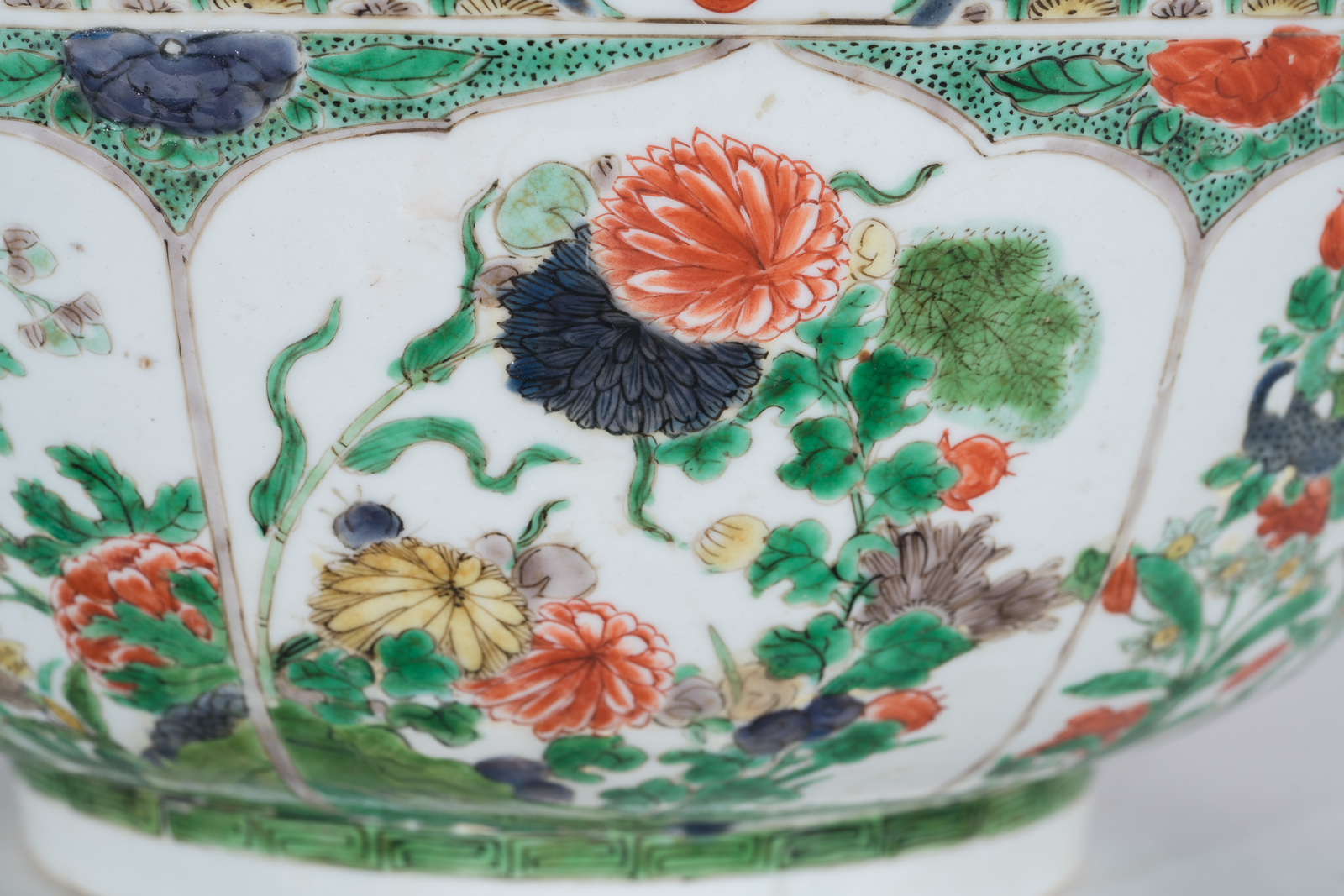 Chinese Art A famille verte porcelain basin painted with floral lobed panels