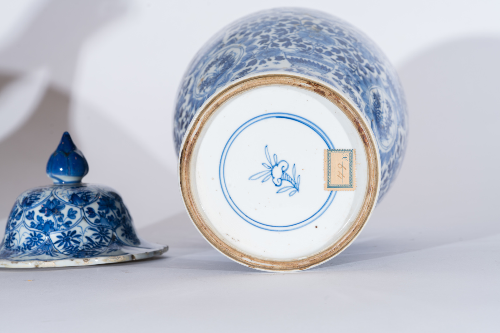 Arte Cinese Vaso a balaustro con coperchio in porcellana bianca e blu decorato a motivi vegetali