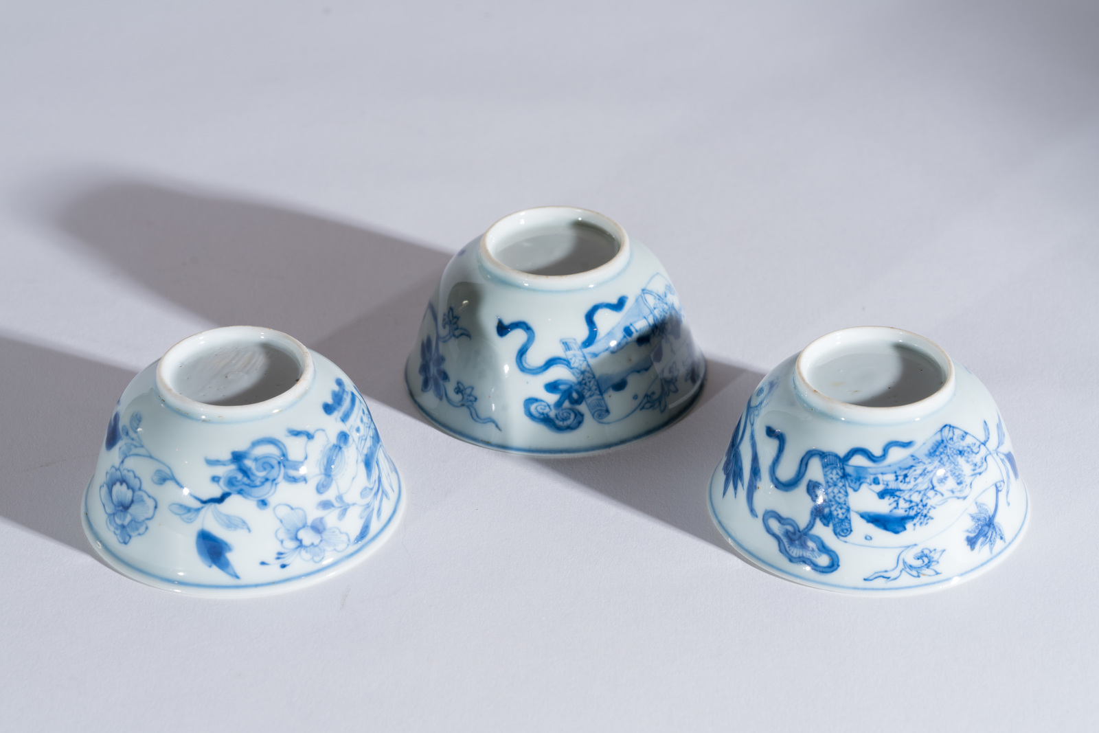 Arte Cinese Tre coppette in porcellana bianco blu a decoro floreale Cina,...