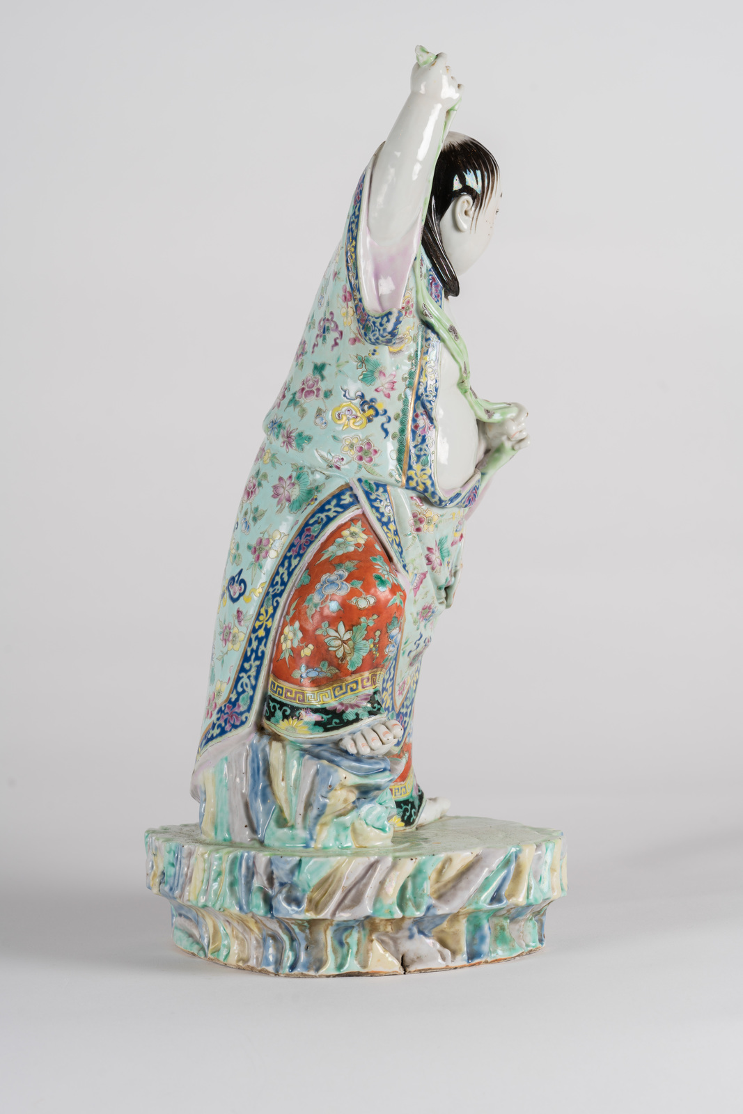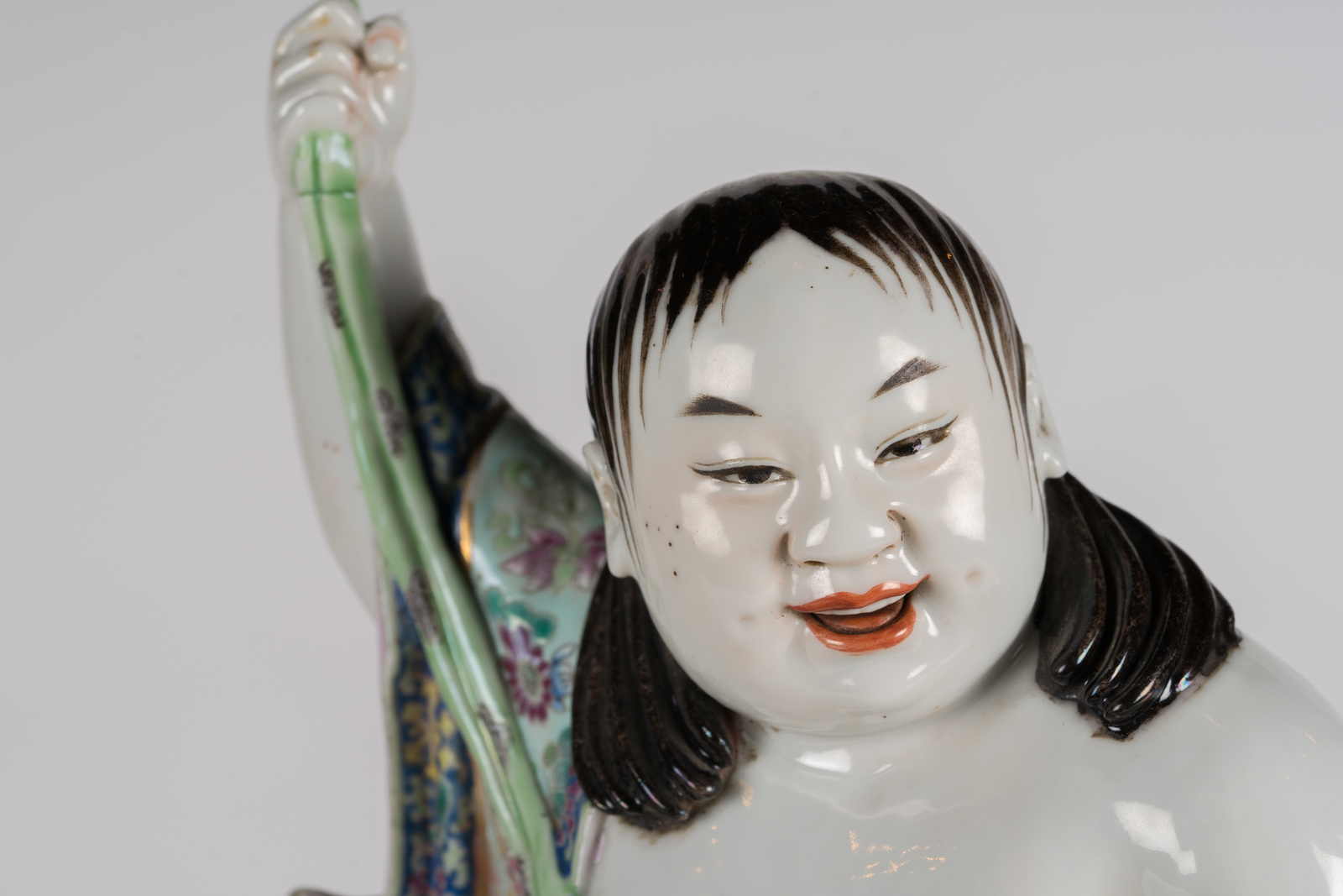 Arte Cinese Figura in porcellana famiglia verde raffigurante Budai Cina,...