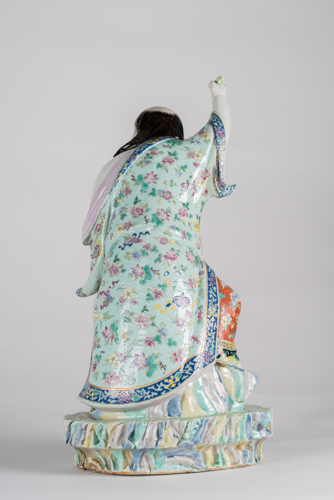 Arte Cinese Figura in porcellana famiglia verde raffigurante Budai
