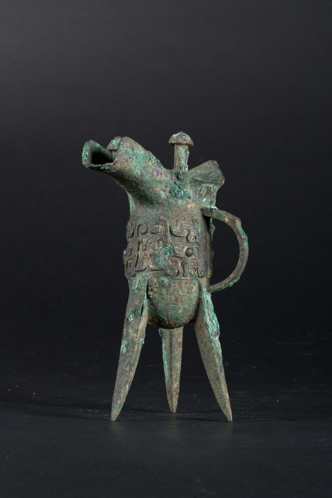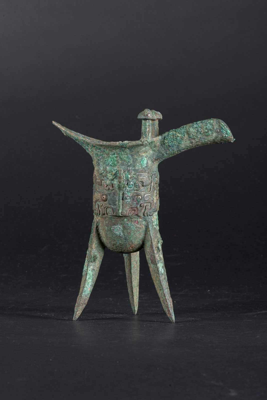 Chinese Art A bronze tripod ritual wine vessel Jue