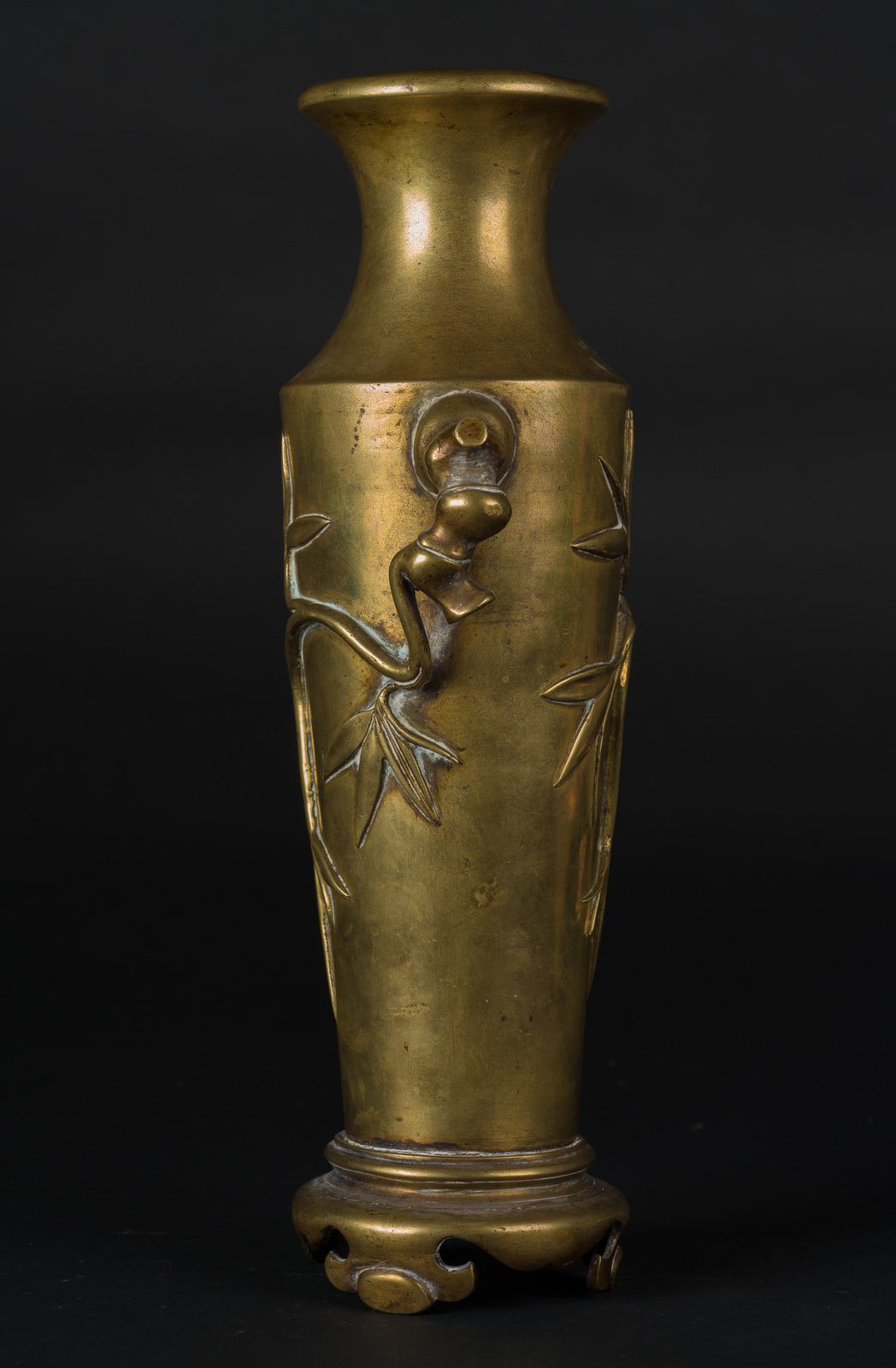 Japanese Art A bronze vase decorated with bamboo leaves in relief