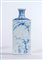 Giappone, XVIII secolo . -. Cm 8,00 x 19,50. Di forma squadrata, due facce dipinte con motivi floreali in blu sottocoperta, due stampate a rilievo con rami in fiore, Spalla e collo dipinti con elementi vegetali.