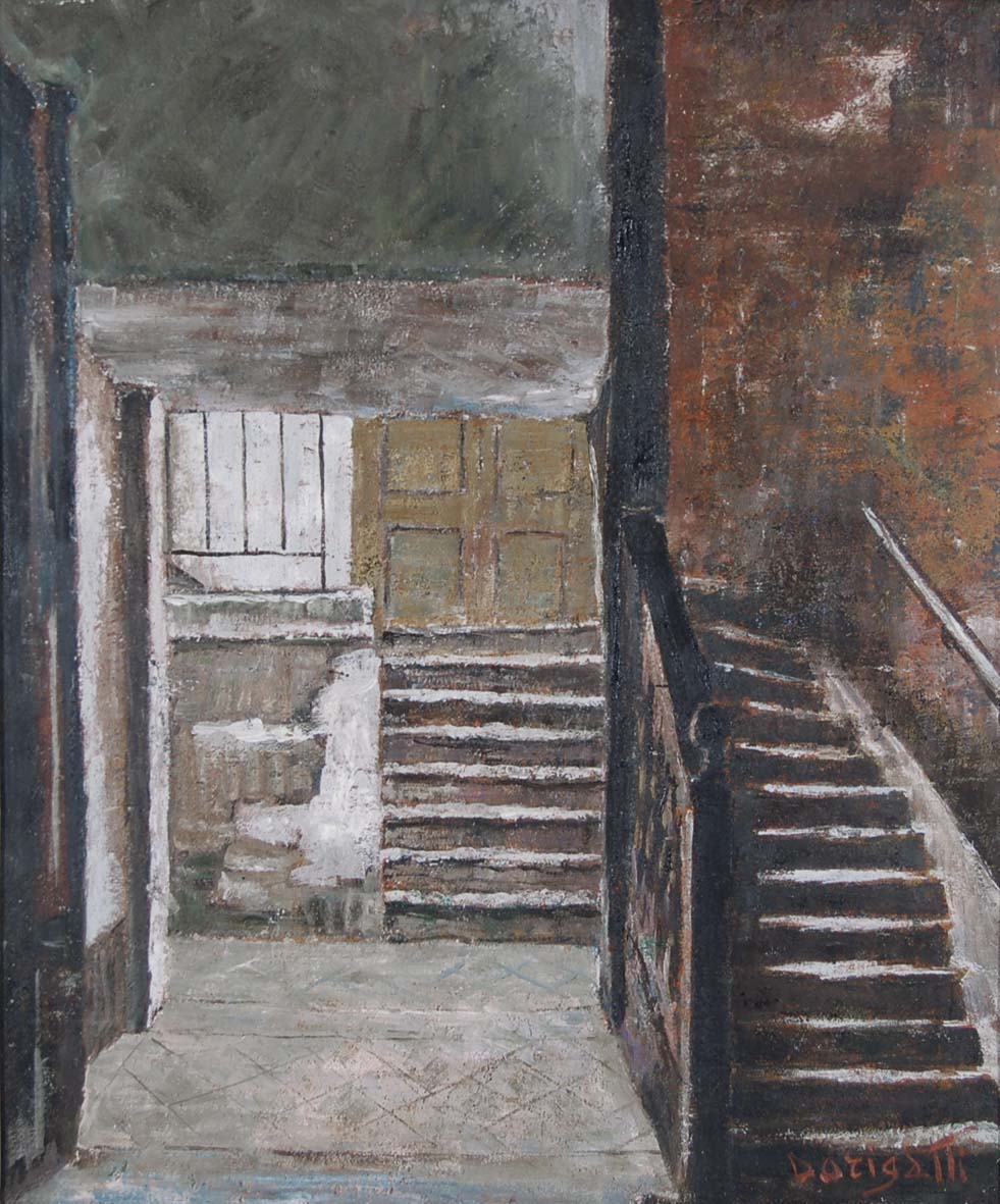 DORIGATTI RENATO Verona 1914 - 1975 La scala olio su tavola 60x50 cm firma in basso a destra