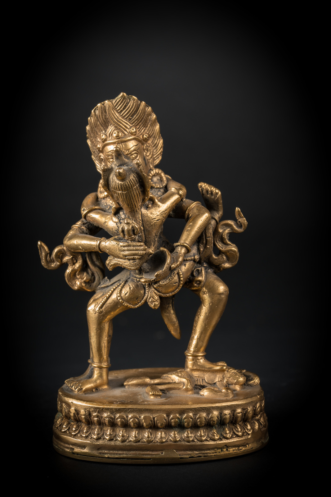 Himalayan Art A gilt bronze figure of Red Mahakala in yab yum