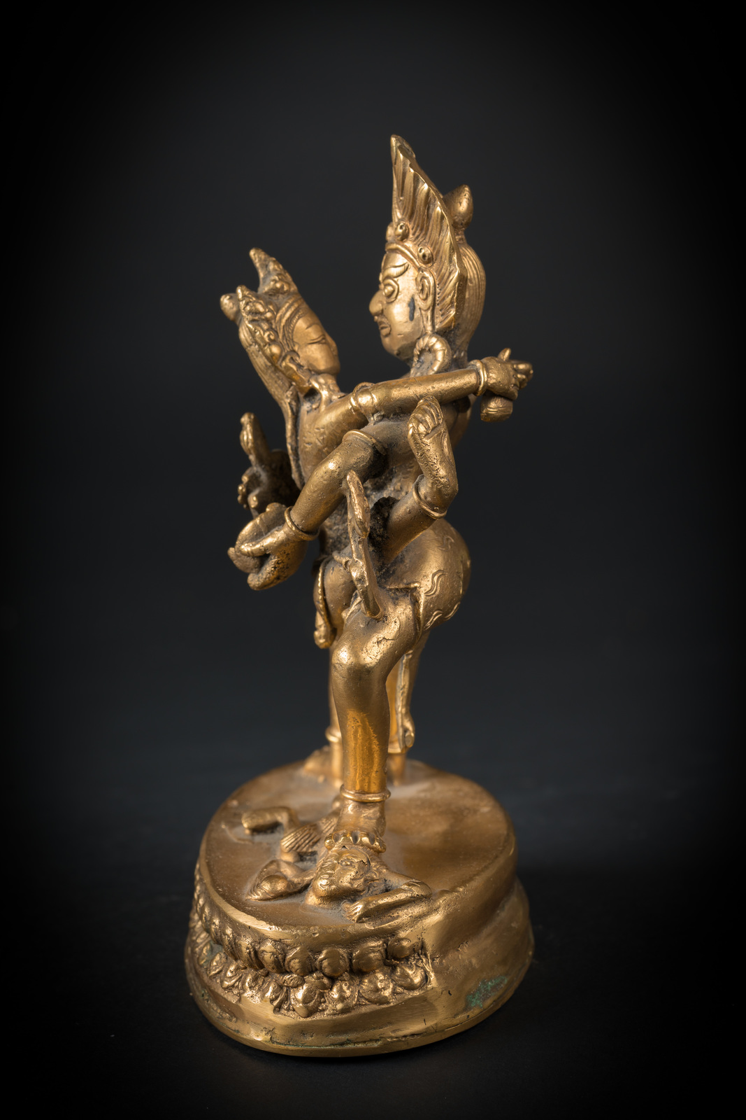 Arte Himalayana Statua in bronzo dorato raffigurante Mahakala rosso in yab yum