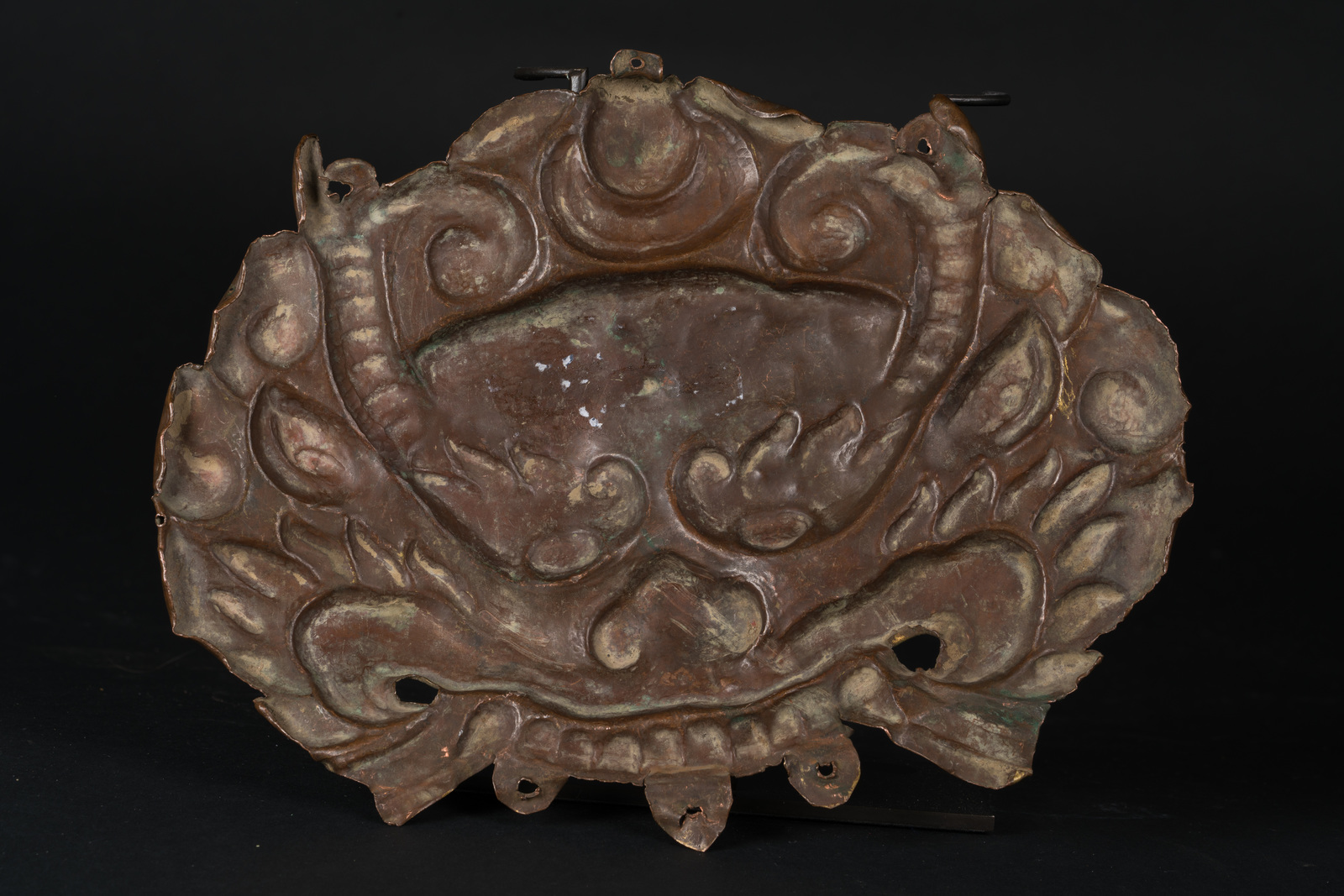 Himalayan Art An embossed gilt bronze Cheppu with polychrome traces