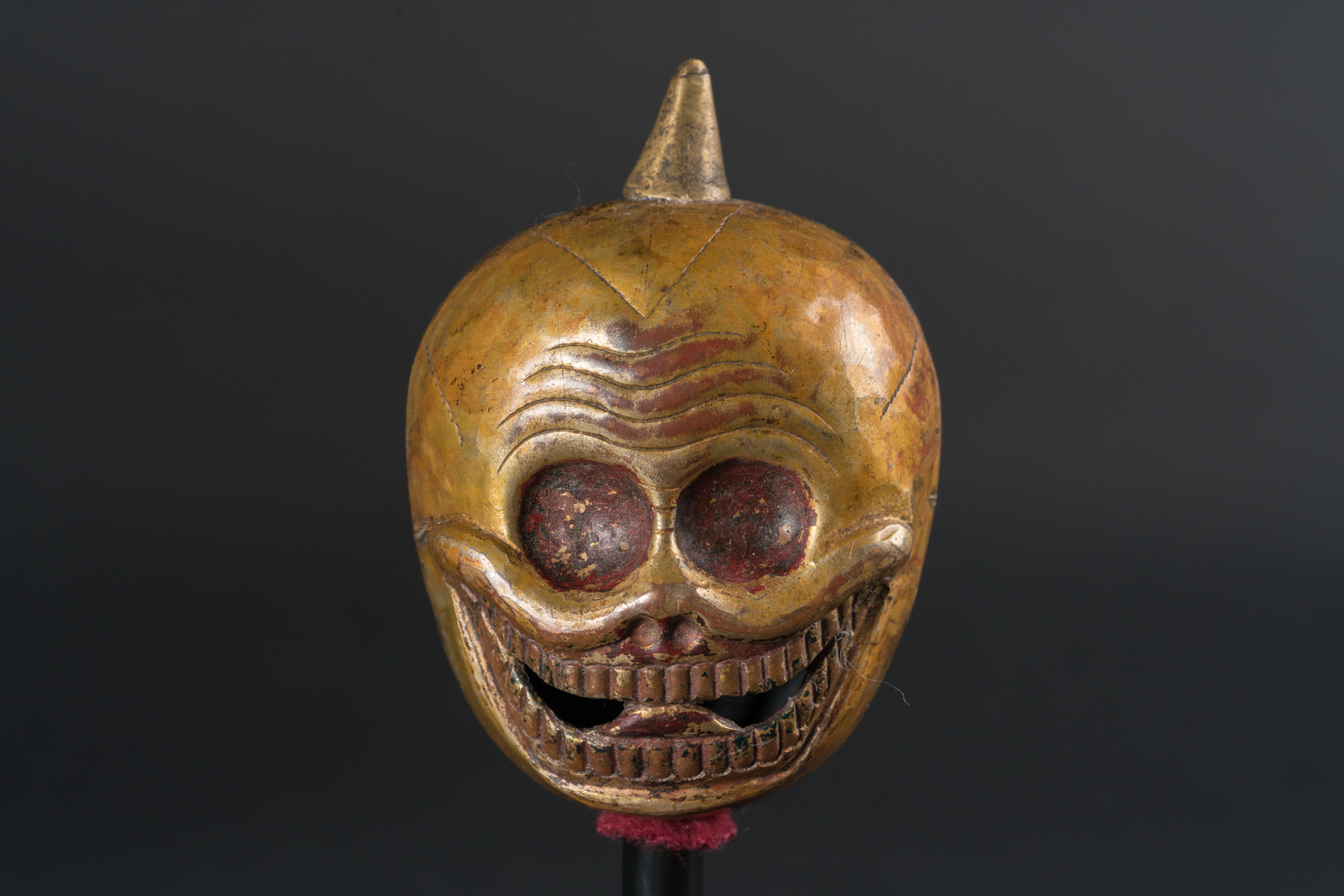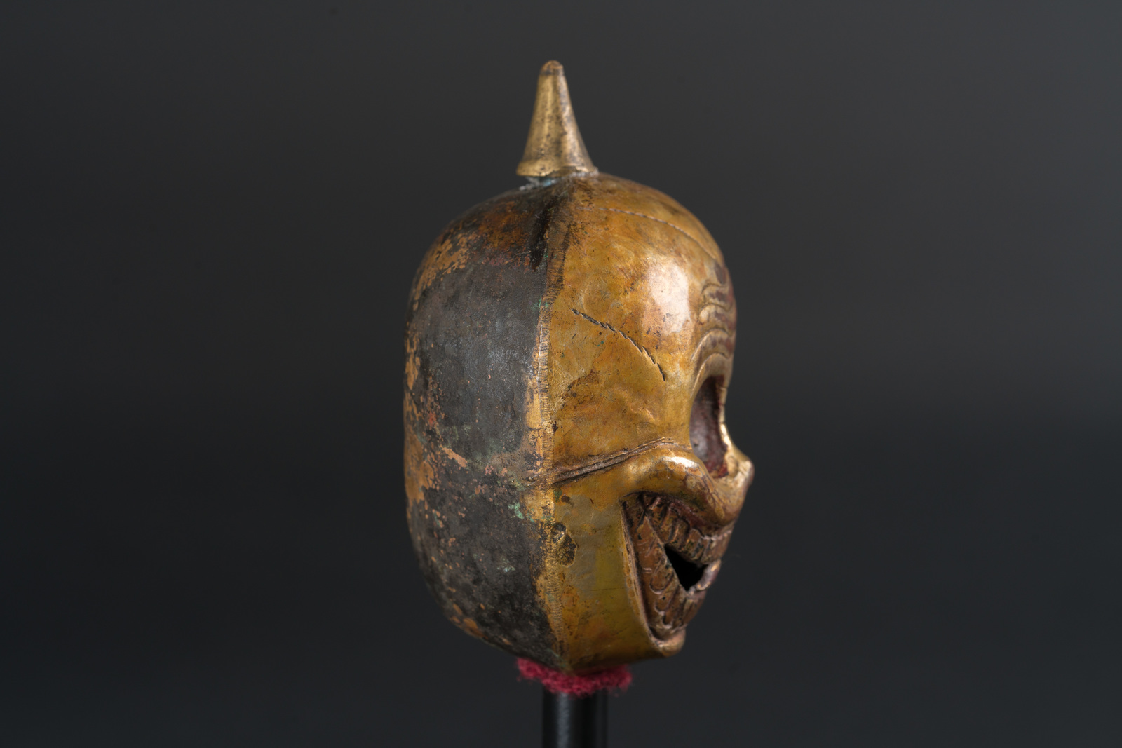 Arte Himalayana Testina di khatvanga in rame dorato e sbalzato Nepal, XIX...