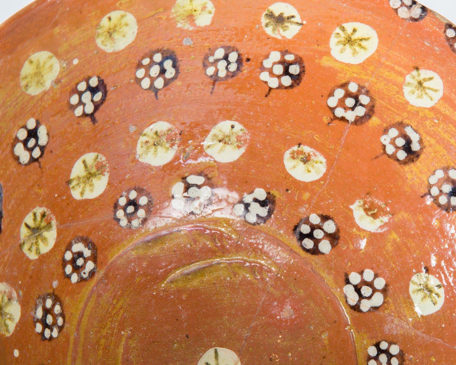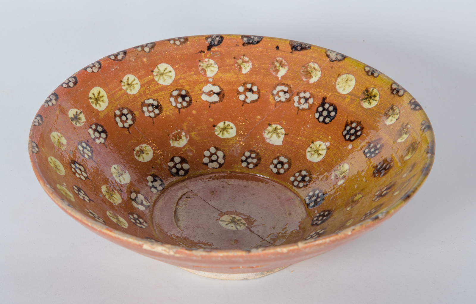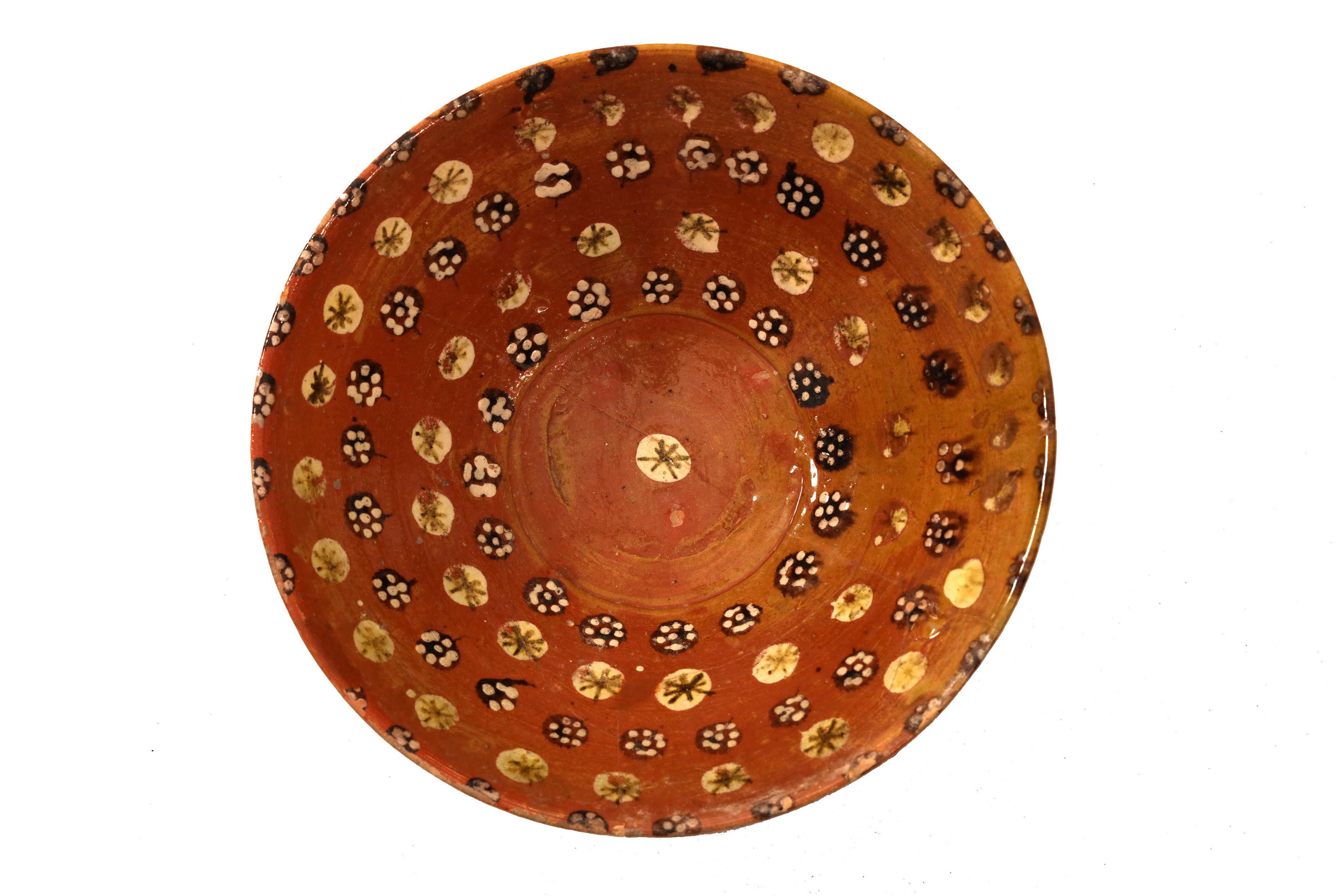 Arte Islamica Ciotola in terracotta ingobbiata ed invetriata decorata con piccoli occhi