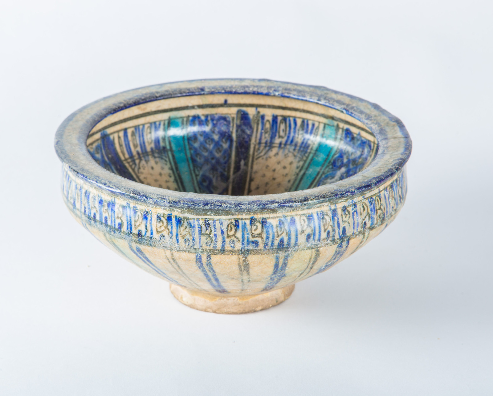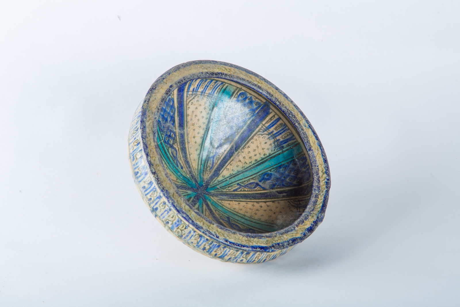 Islamic Art A cobalt and turquoise pottery bowl with radiating design Persia, Kashan, 14th century. . Cm 20,00 x 9,00.