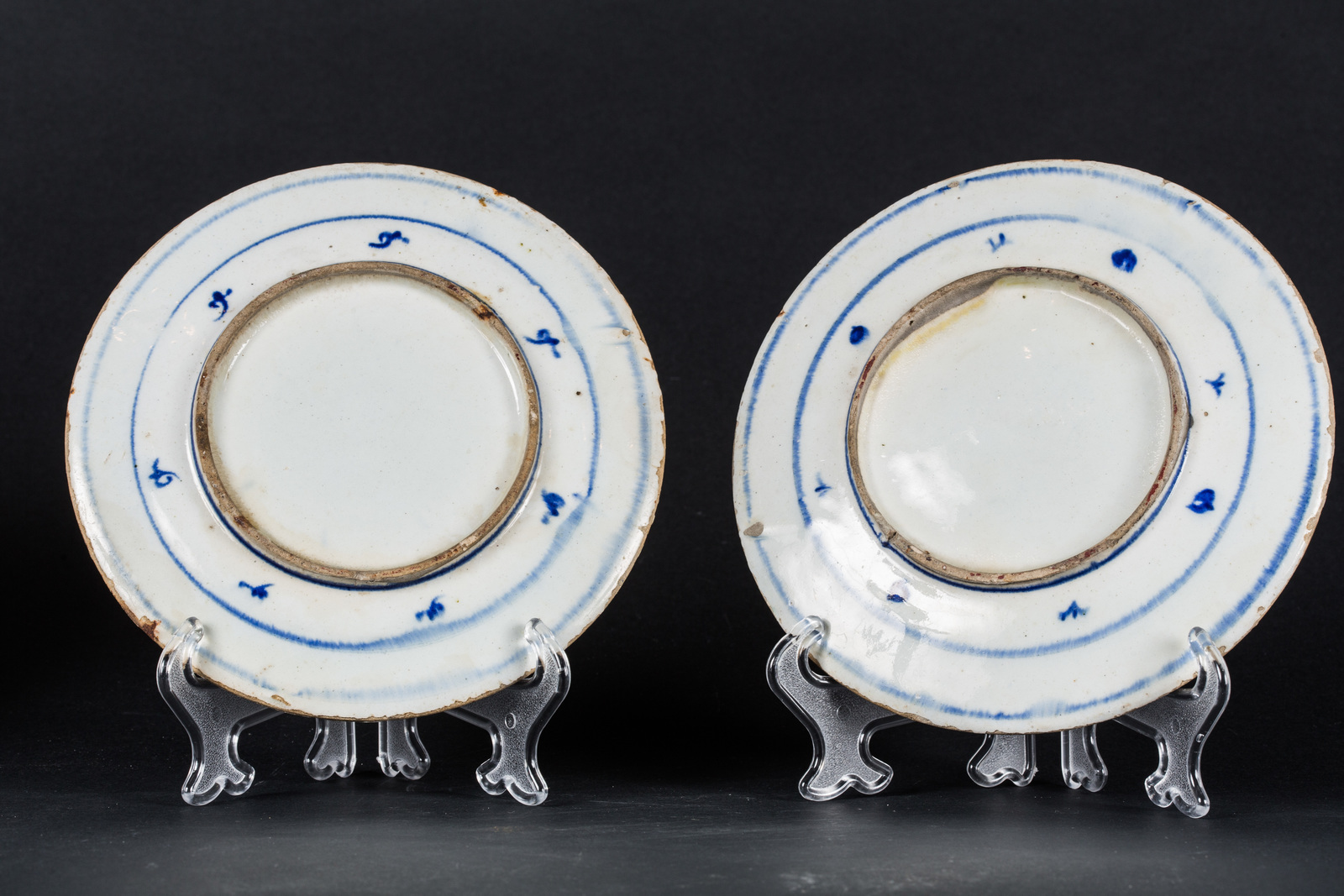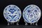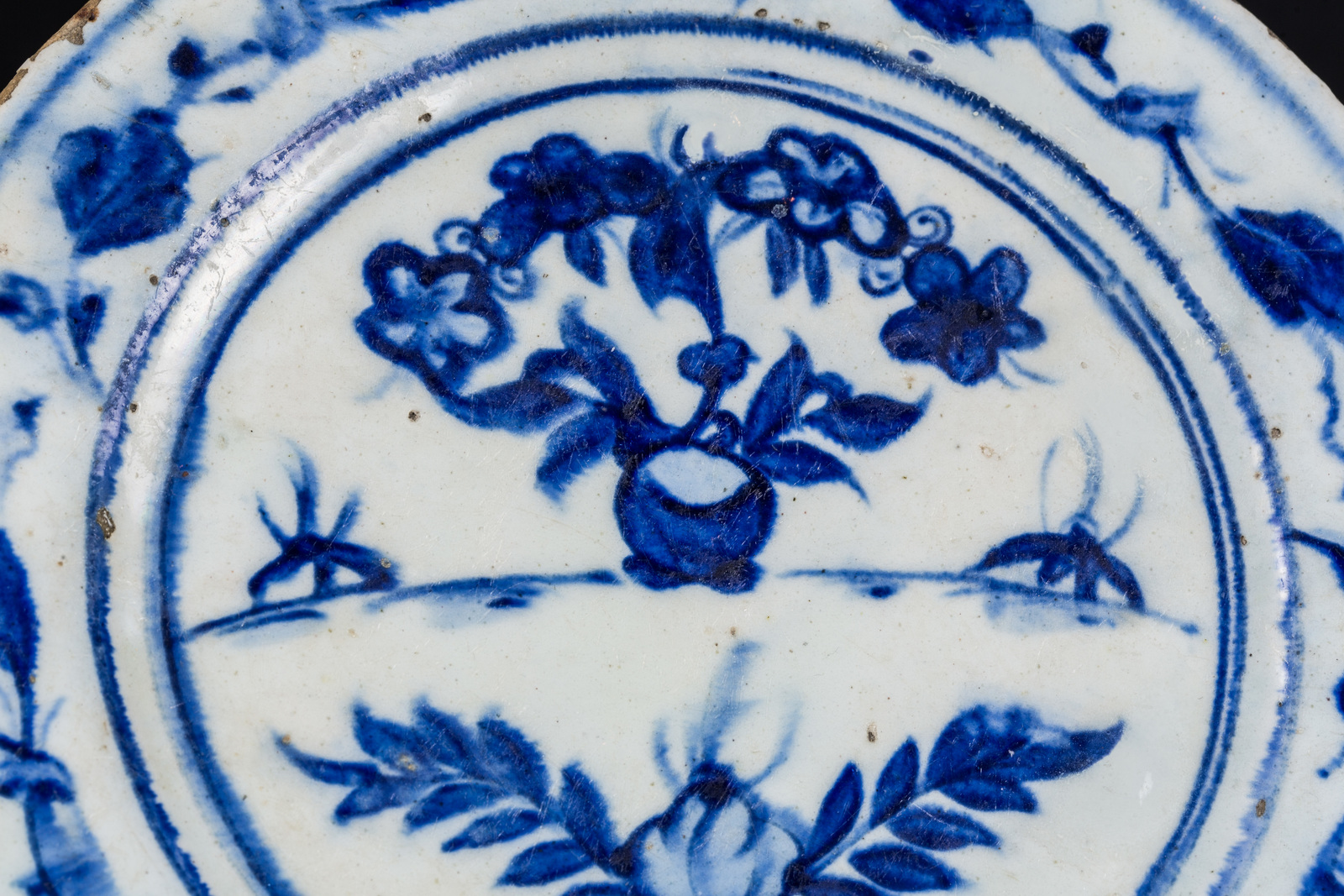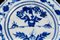 Turchia Ottomana, XVII secolo . -. Cm 20,00. Di forma circolare e con bassissima base circolare, i due piatti sono dipinti con motivi floreali in blu sottocoperta e il retro è caratterizzato da due linee continue e motivi astratti.