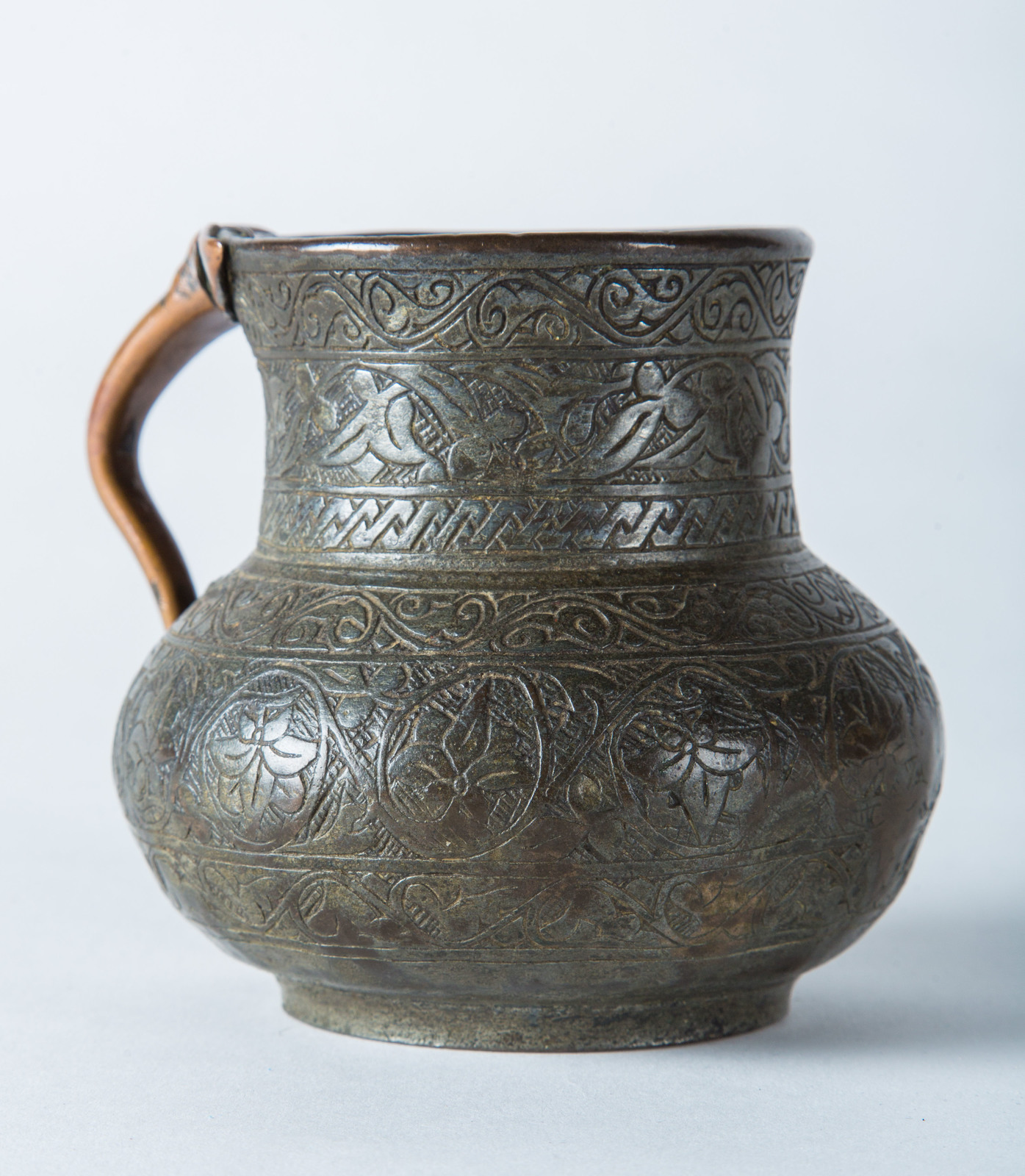 Islamic Art A tinner copper Timurid jug engraved with floral design