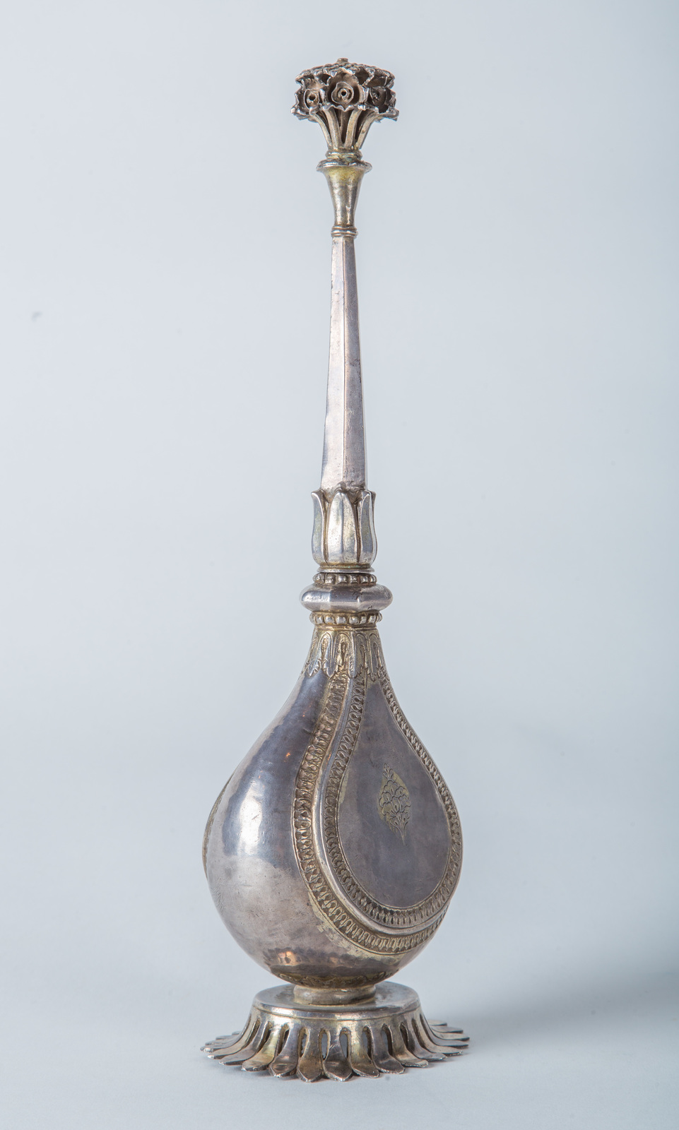 Indian Art A silver and gilded silver rosewater sprinkler or Gulab pash decorated with acanthus leaves and floreal motifs