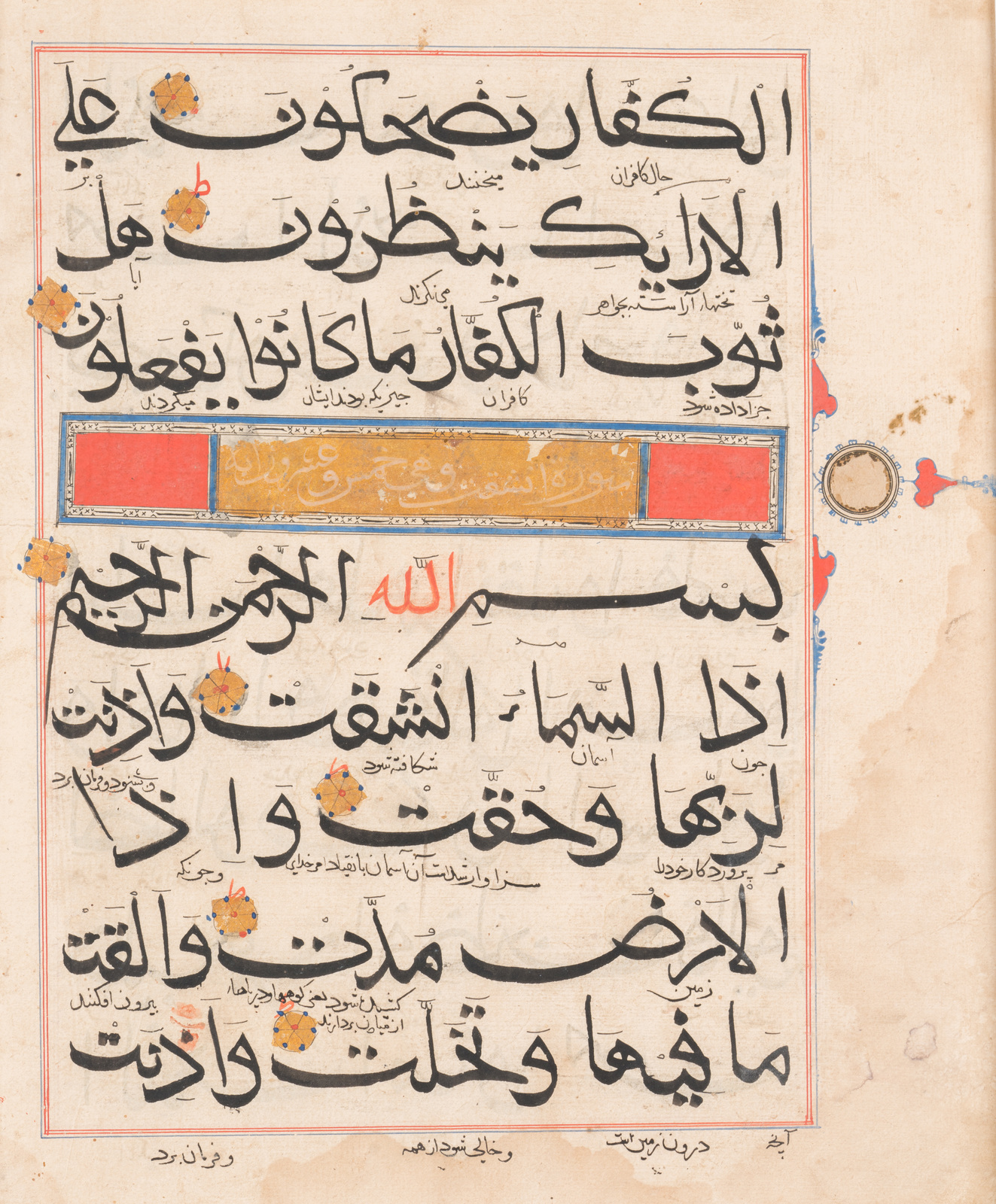 Islamic Art A Mamluk Quran folio with the heading of Sura 84 al-Inshiqāq