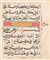 Domini mamelucchi, XV secolo . -. Cm 28,00 x 37,50. Testo in arabo su carta, composto da 8 linee scritte in inchiostro nero con titolo centrale in riserva entro cartiglio dorato, note interlineari, marcatori testuali in forma di rosette dorate rifinite con punti colorati.