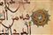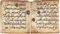 Maghreb, XII - XIV secolo . . Cm 22,00 x 23,50. Testo in arabo su pergamena, composto da 7 linee in maghribi in inchiostro nero con diacritici rossi e blu. Marcatori testuali in forma di rosette dorate rifinite con blu e marcatori di sezione nei margini illuminati con stella ad otto punte su sfondo di piccoli elementi vegetali. Il testo riporta parte della Sura n. 12, ayat da 18 a 23.