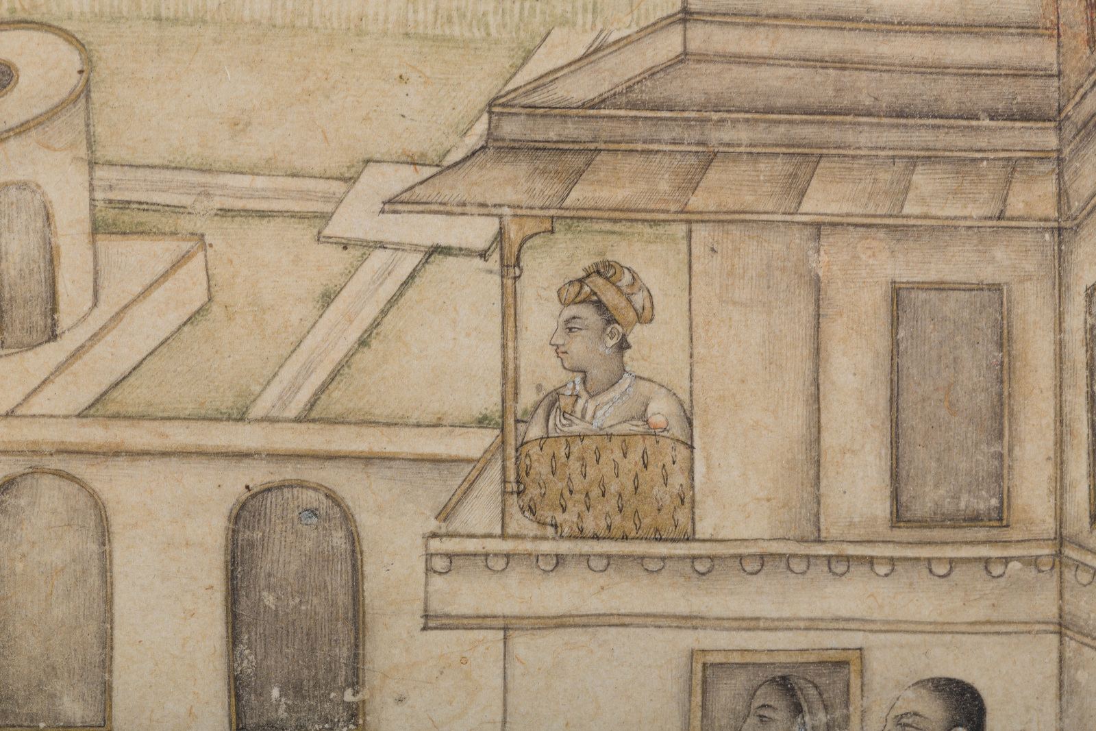 Indian Art A drawing depicting the bath of a princess Gouache, drawing and gold on paper Mughal India, 18th century. . Cm 14,50 x 21,00. . Cornice presente