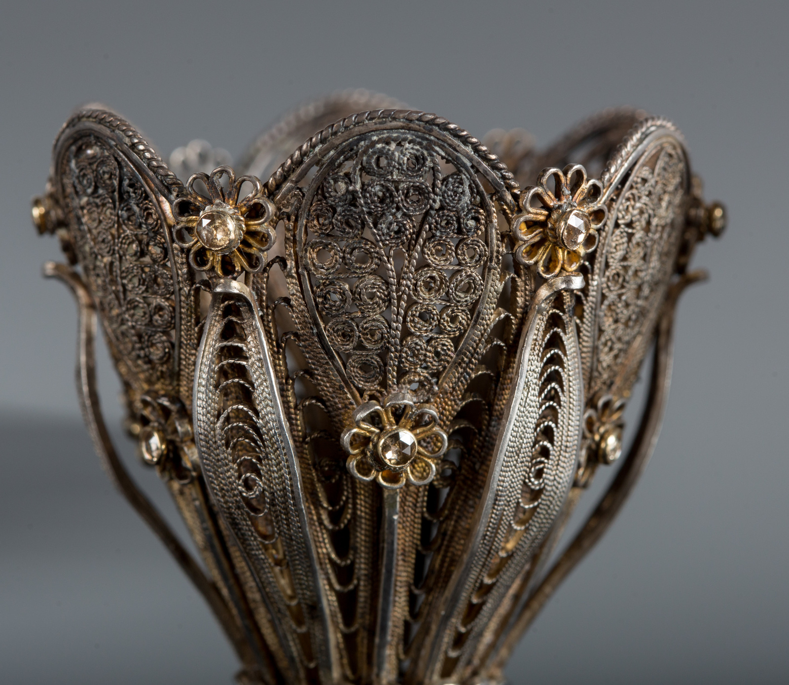 Arte Islamica Coppia di zarfs in filigrana d'argento con piccoli diamanti