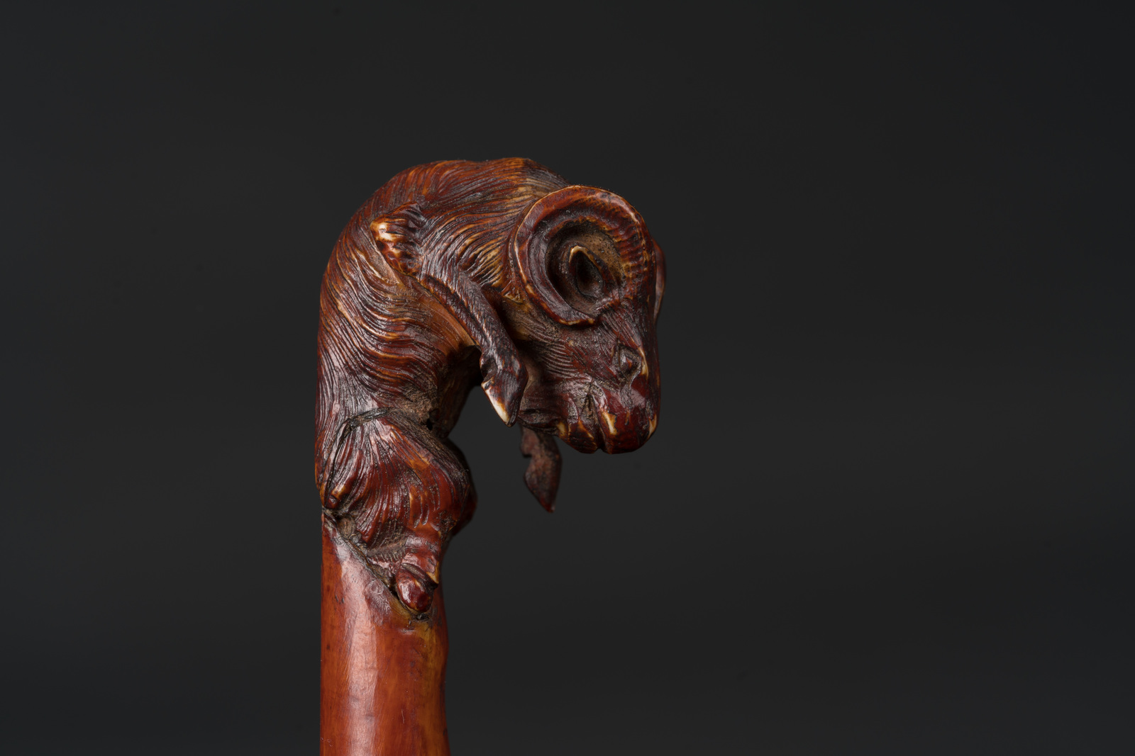 India, XVIII secolo . . Cm 11,00. L'oggetto mostra una testa di ariete accucciato sul fronte ed un fiore sul retro.