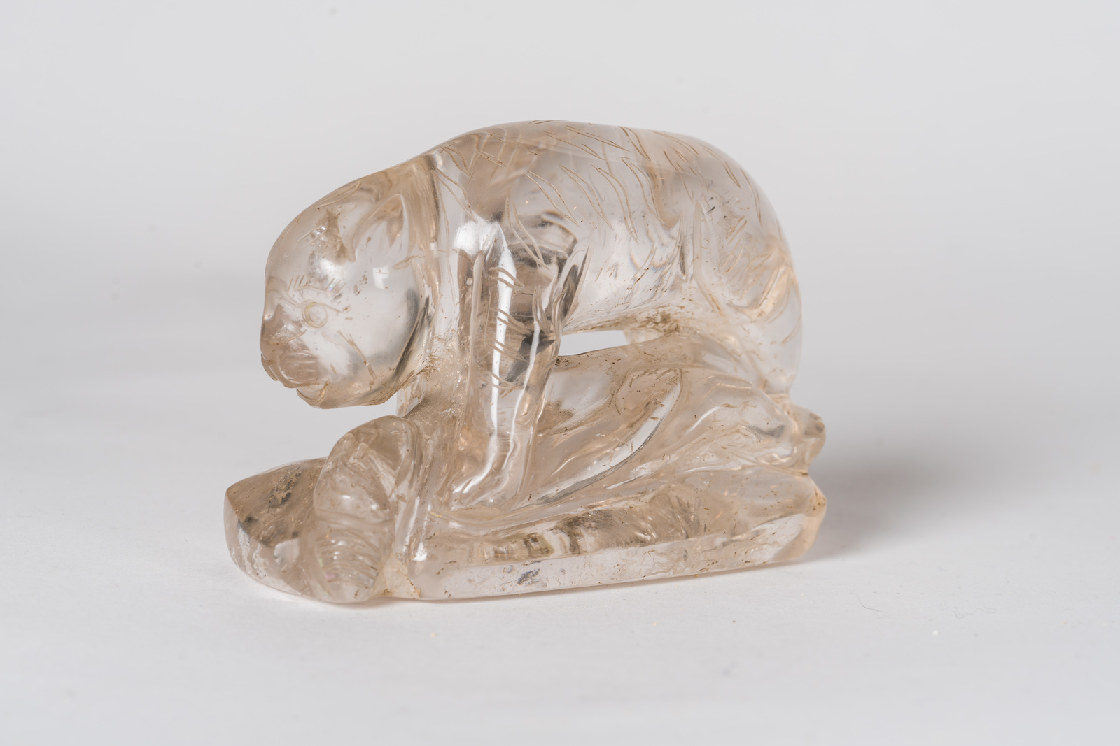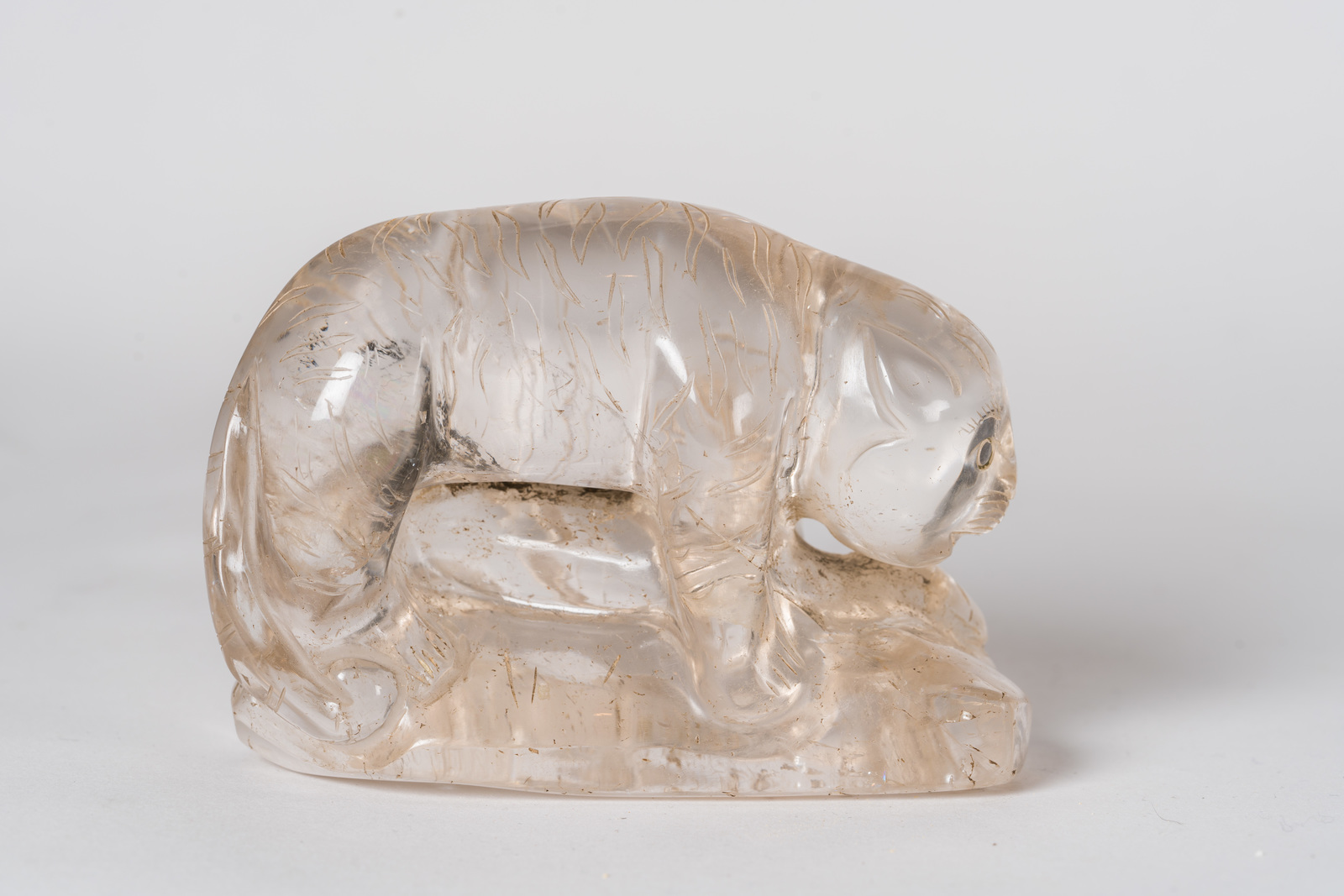 Indian Art A rock crystal tiger India, 19th century. . Cm 11,00 x 8,00 x 4,00. This piece has been sold in London at Sotheby's auction of the 19th of October 1983 "Islamic Works of Art Carpets and Textiles", Lot 240.