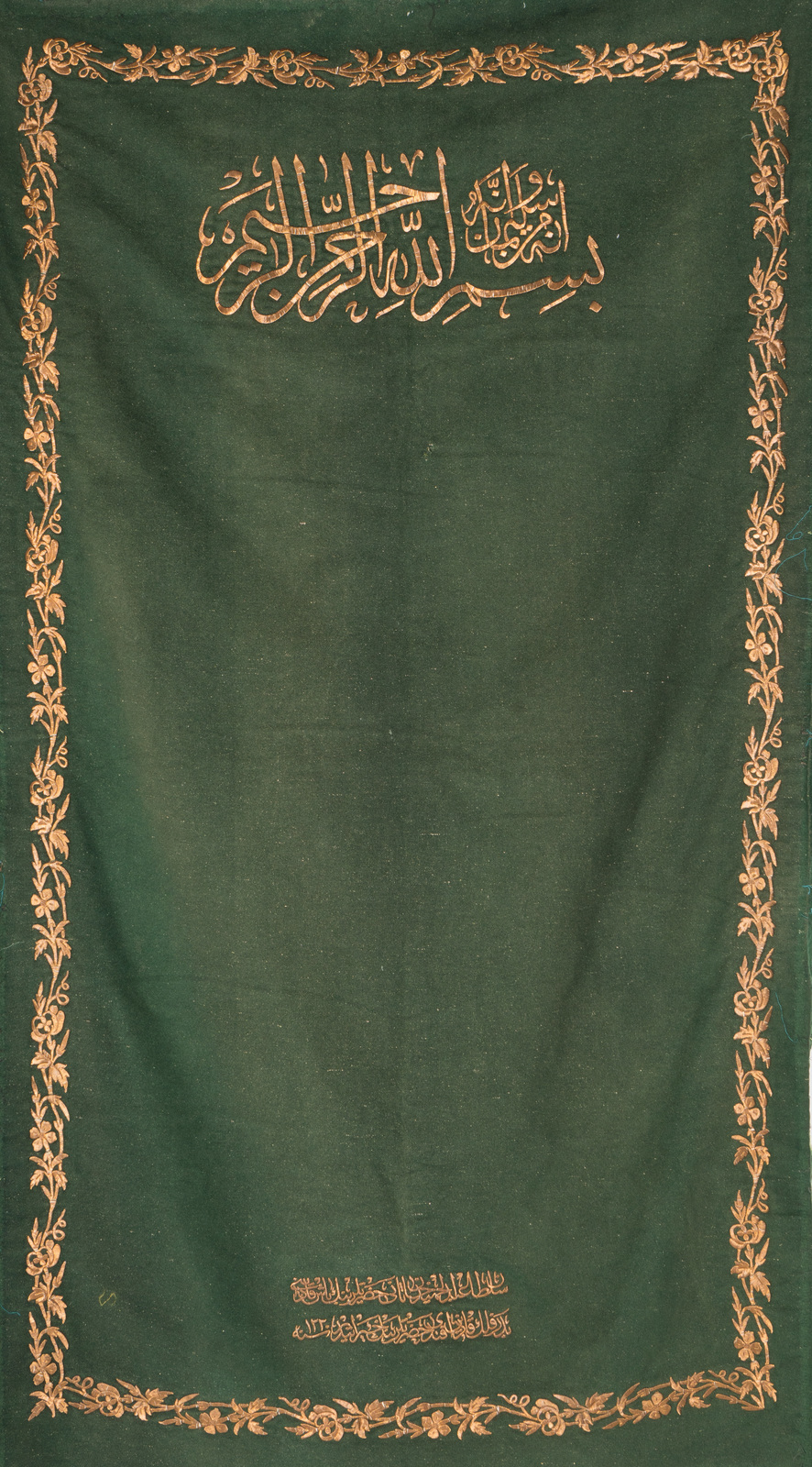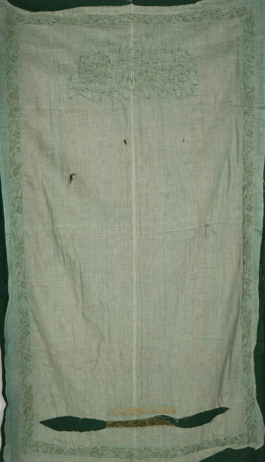 Islamic Art Ottoman wool green curtain or prayer mat inscribed with the name of Sultan Abdhul Hossein 2nd and the bismillah