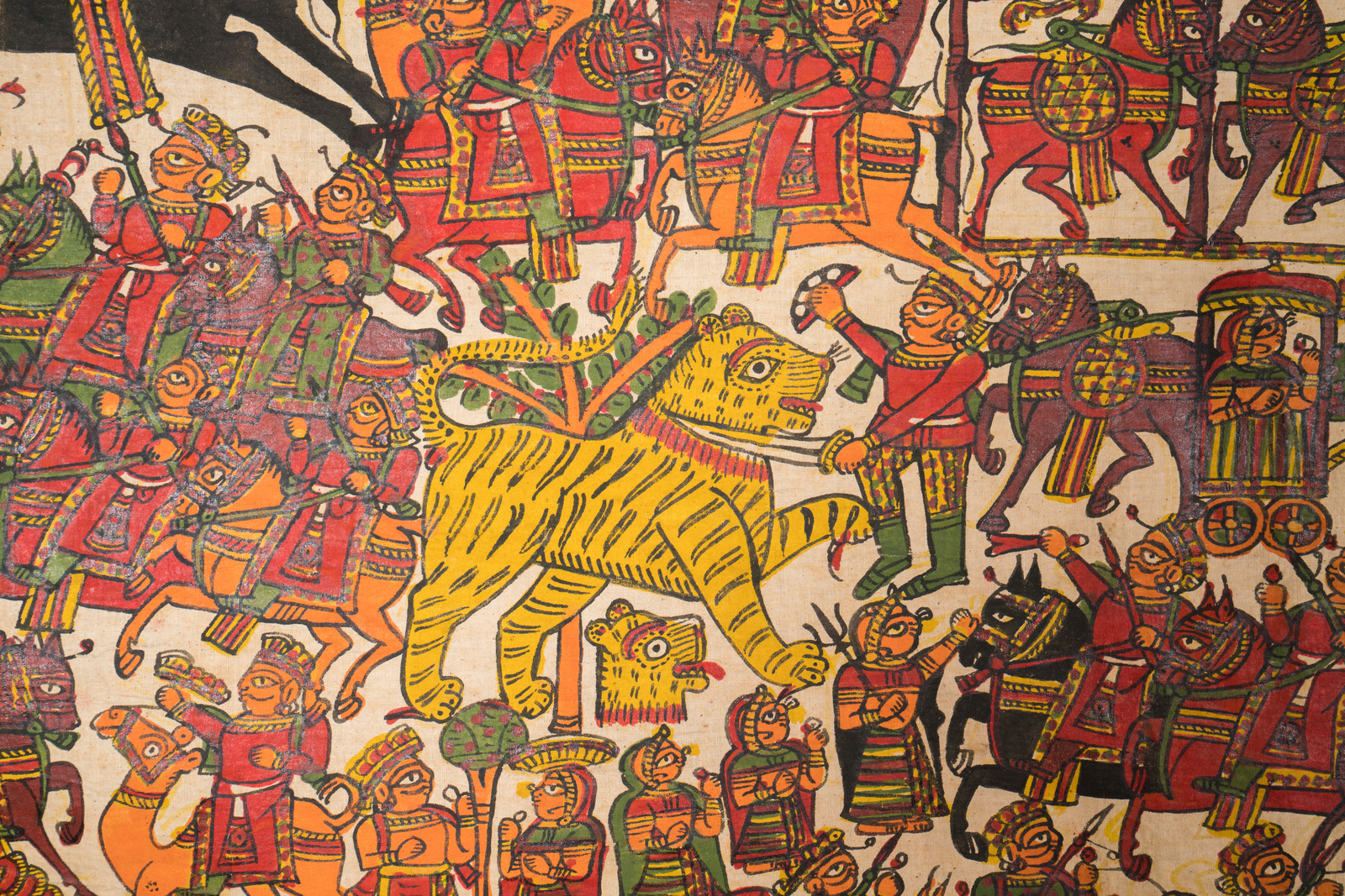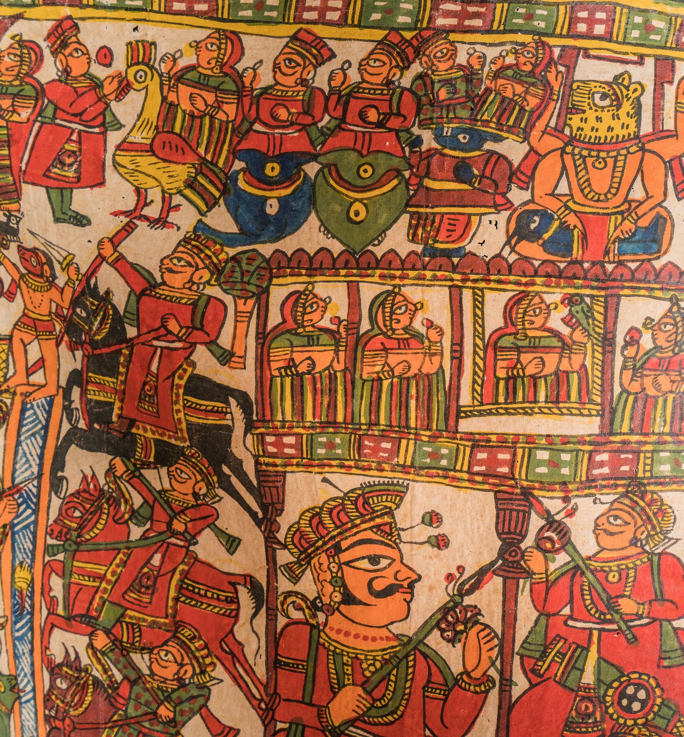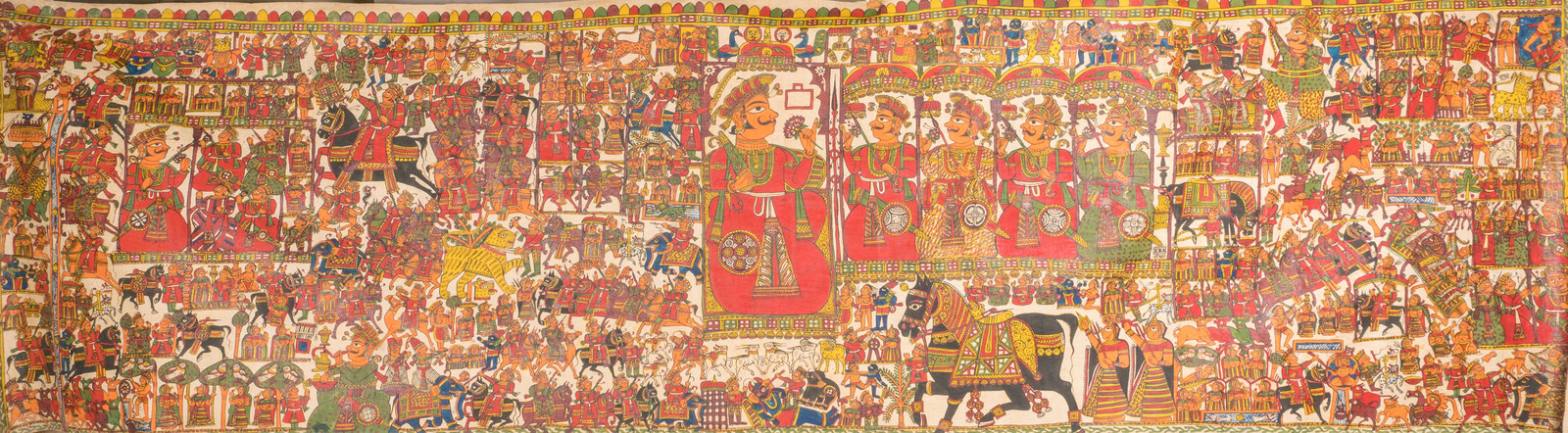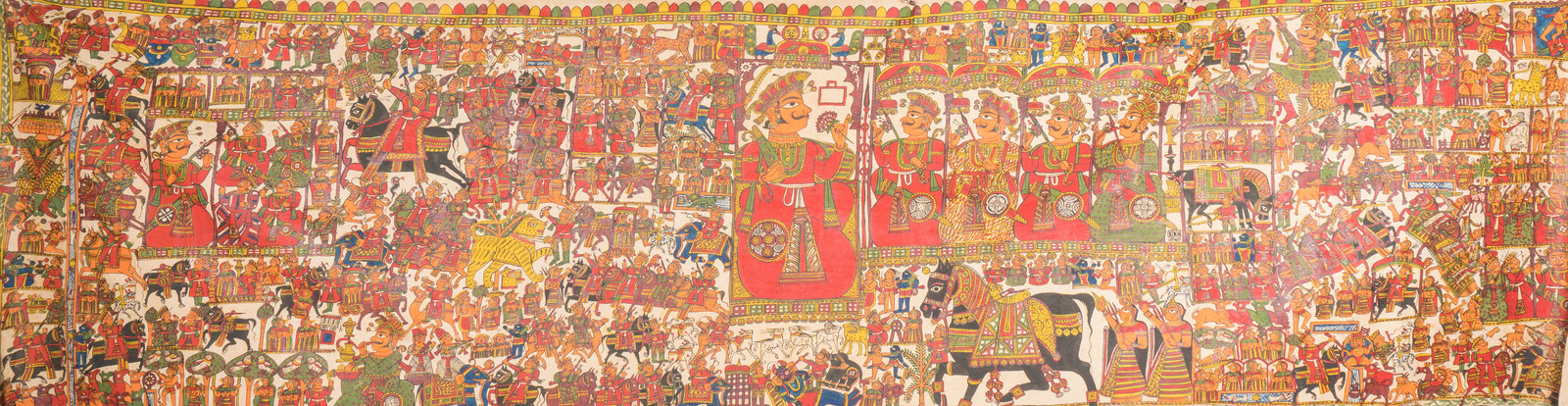 Indian Art A large Pabuji Ki Phad or cloth scroll painted with the Story of Pabuji