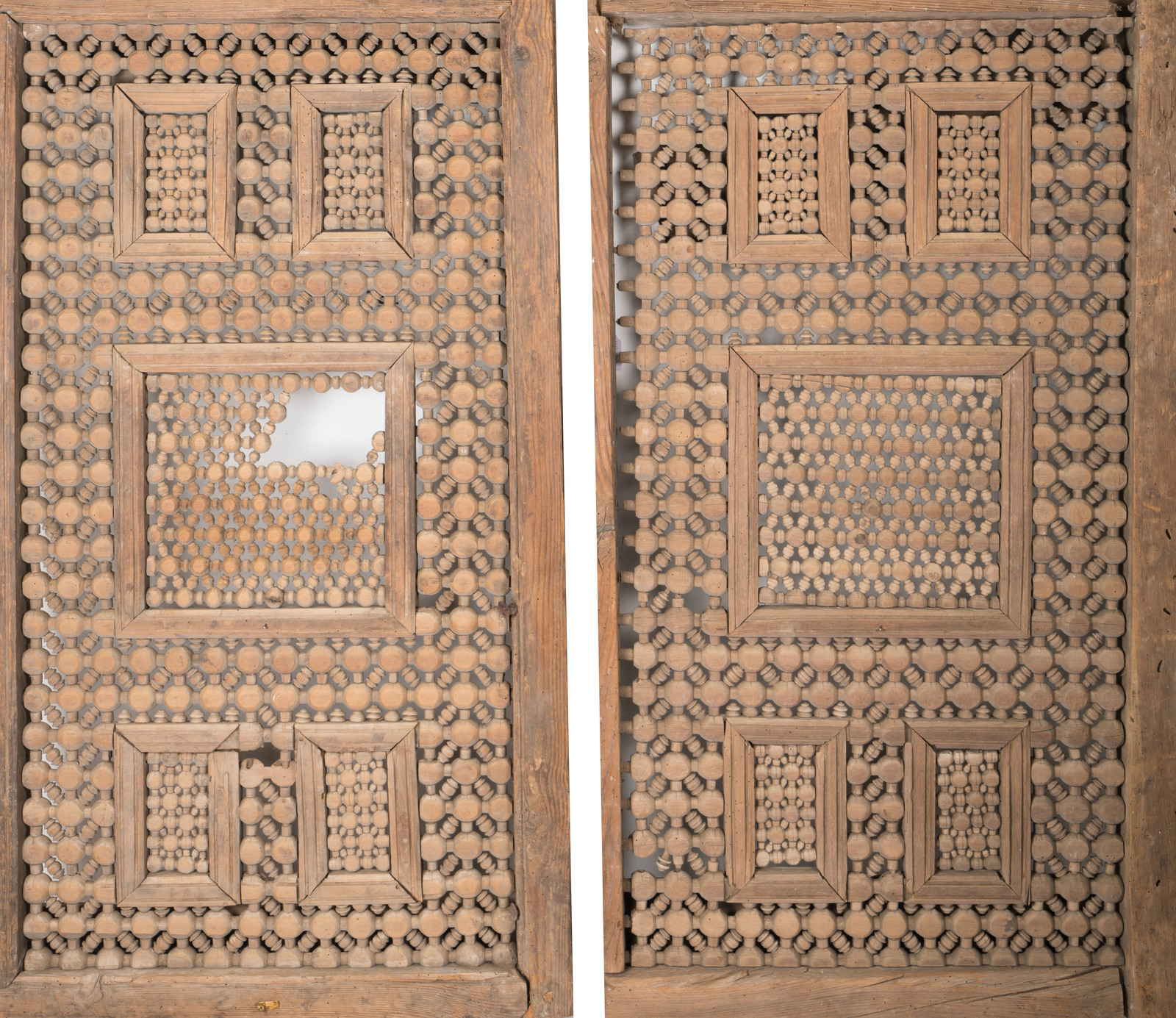 Arte Islamica Tre pannelli in legno traforato Vicino Oriente, XVI-XIX secolo...