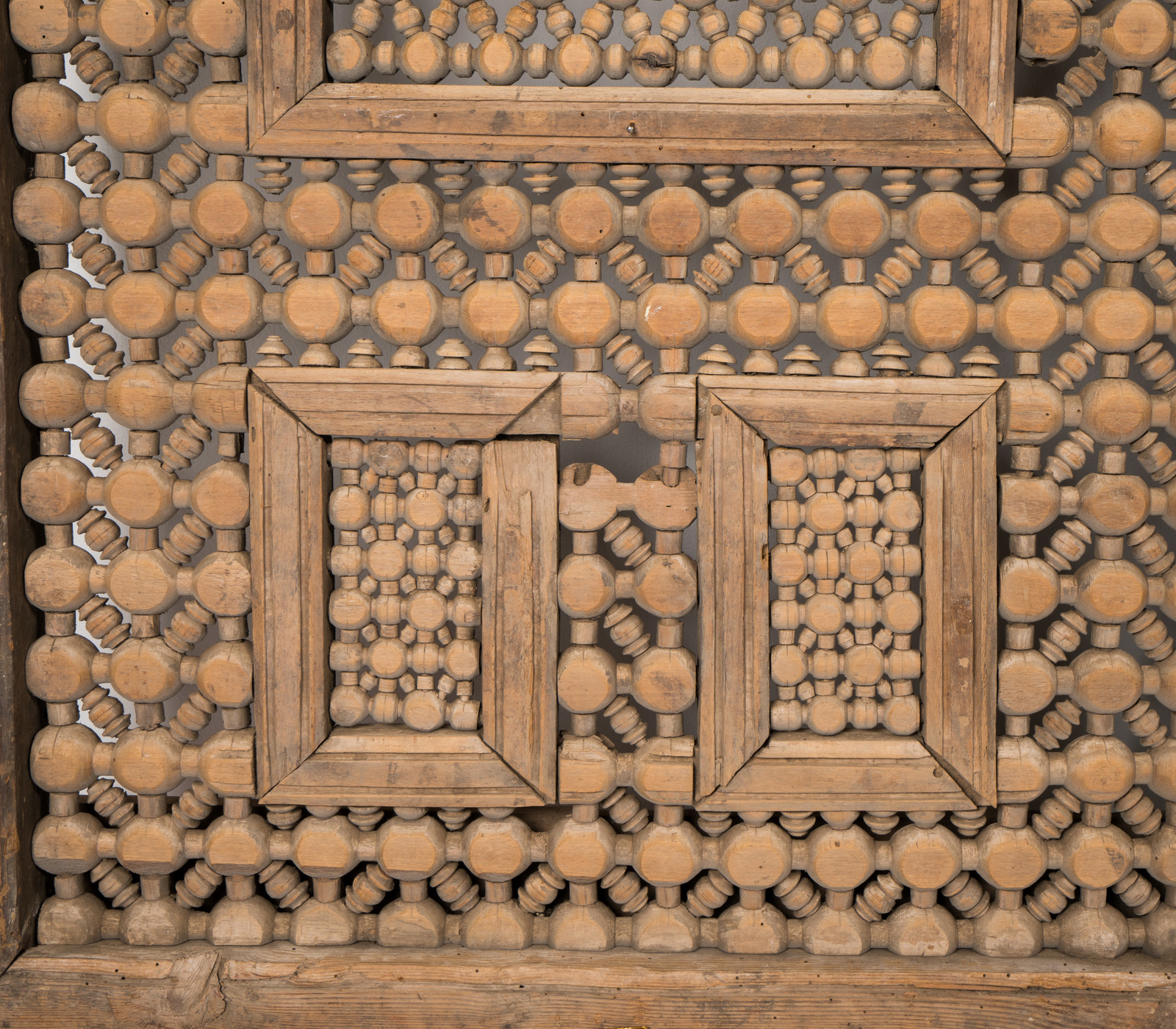 Islamic Art Three carved wood latticework ground oriel windows (moucharaby)