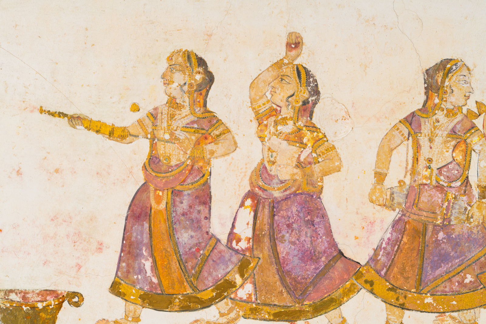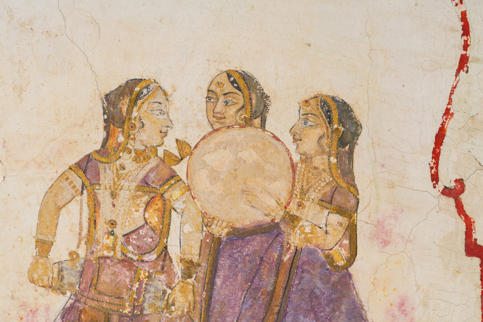 Indian Art A stucco architectural element painted with ladies at leisure