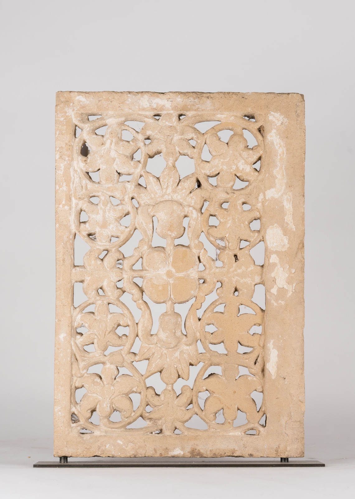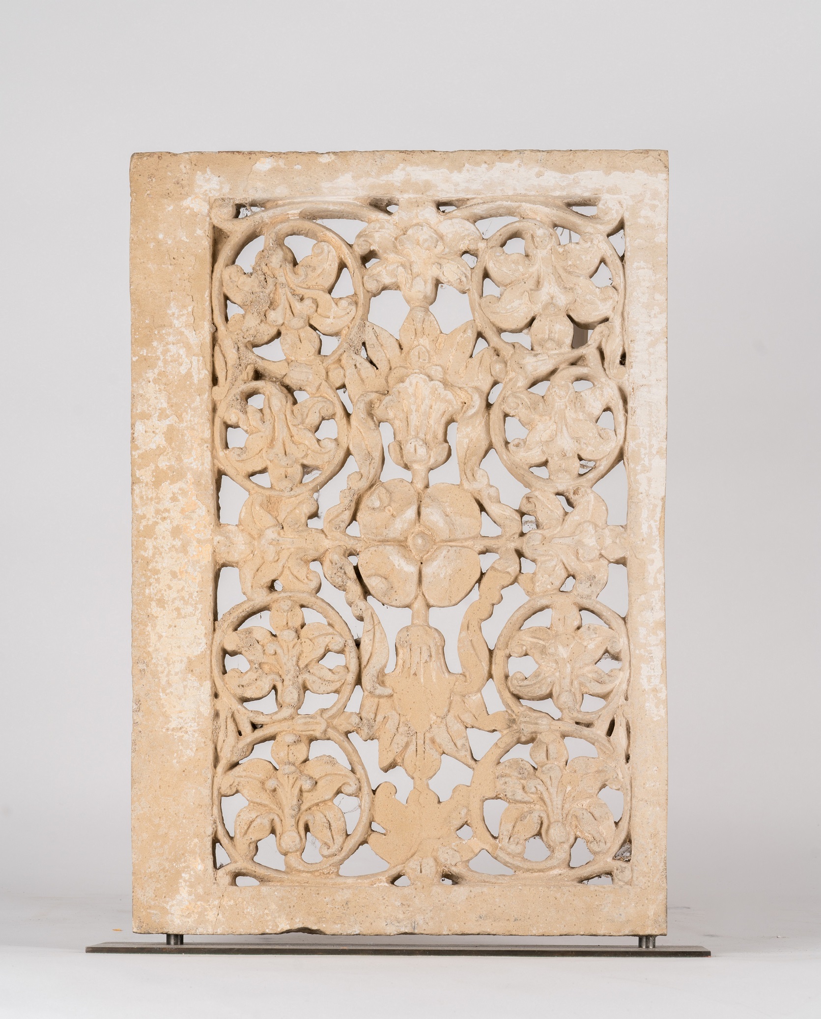 Indian Art A sandstone latticework screen (jali) sculpted with floral motif