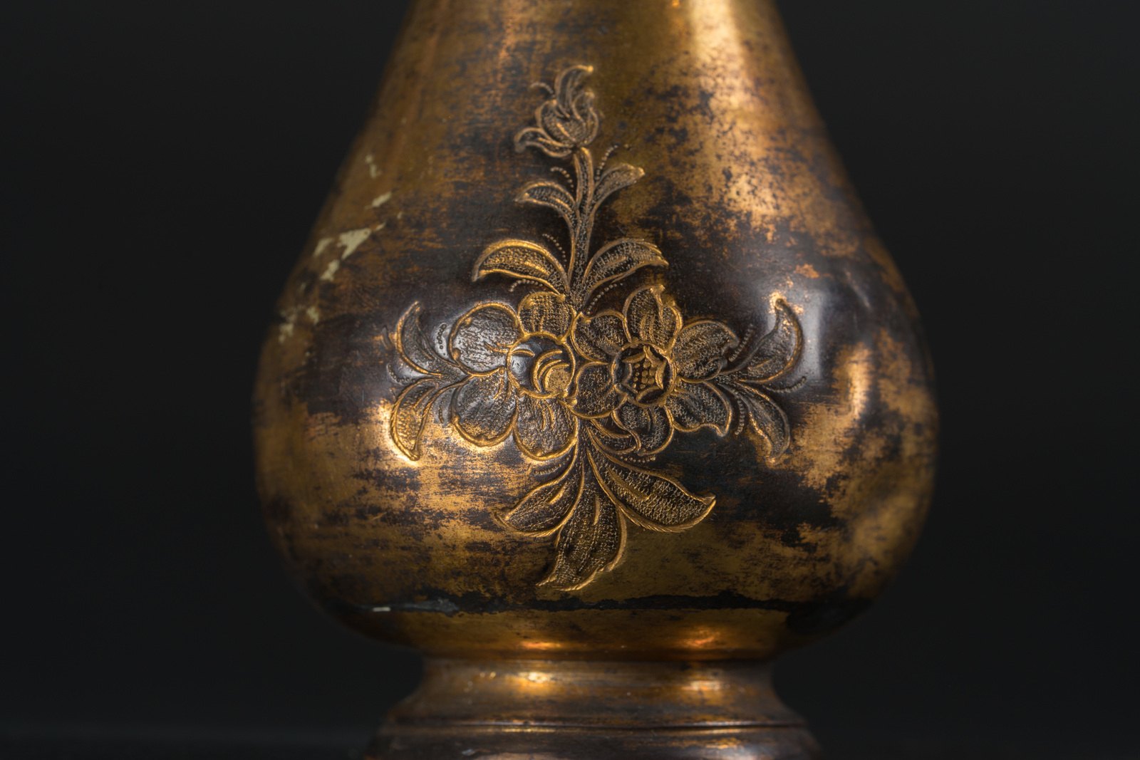 Islamic Art A small gilt copper (tombak) bottle engraved with floral motif Ottoman Turkey, 19th century . . Cm 15,50.