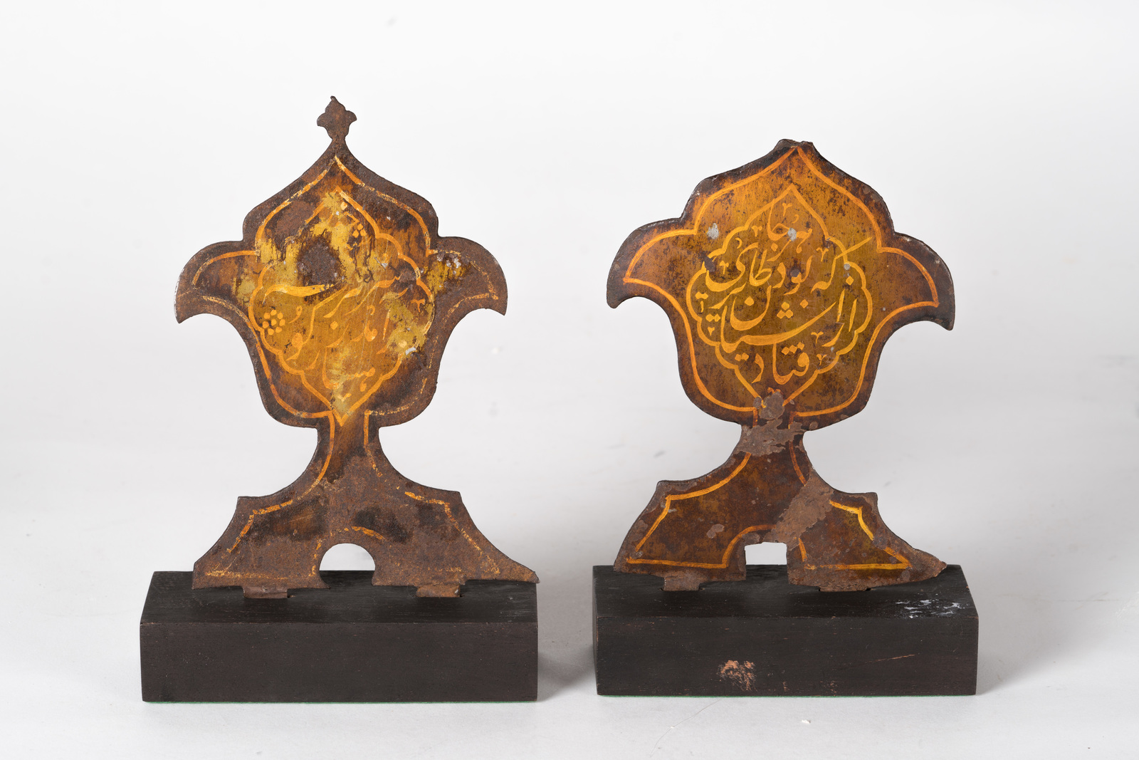 Islamic Art Two Qajar bronze tomb or shrine finials inscribed with poetry