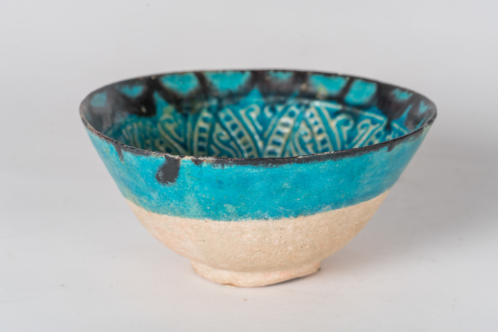 Arte Islamica Ciotola stampata ed invetriata di turchese