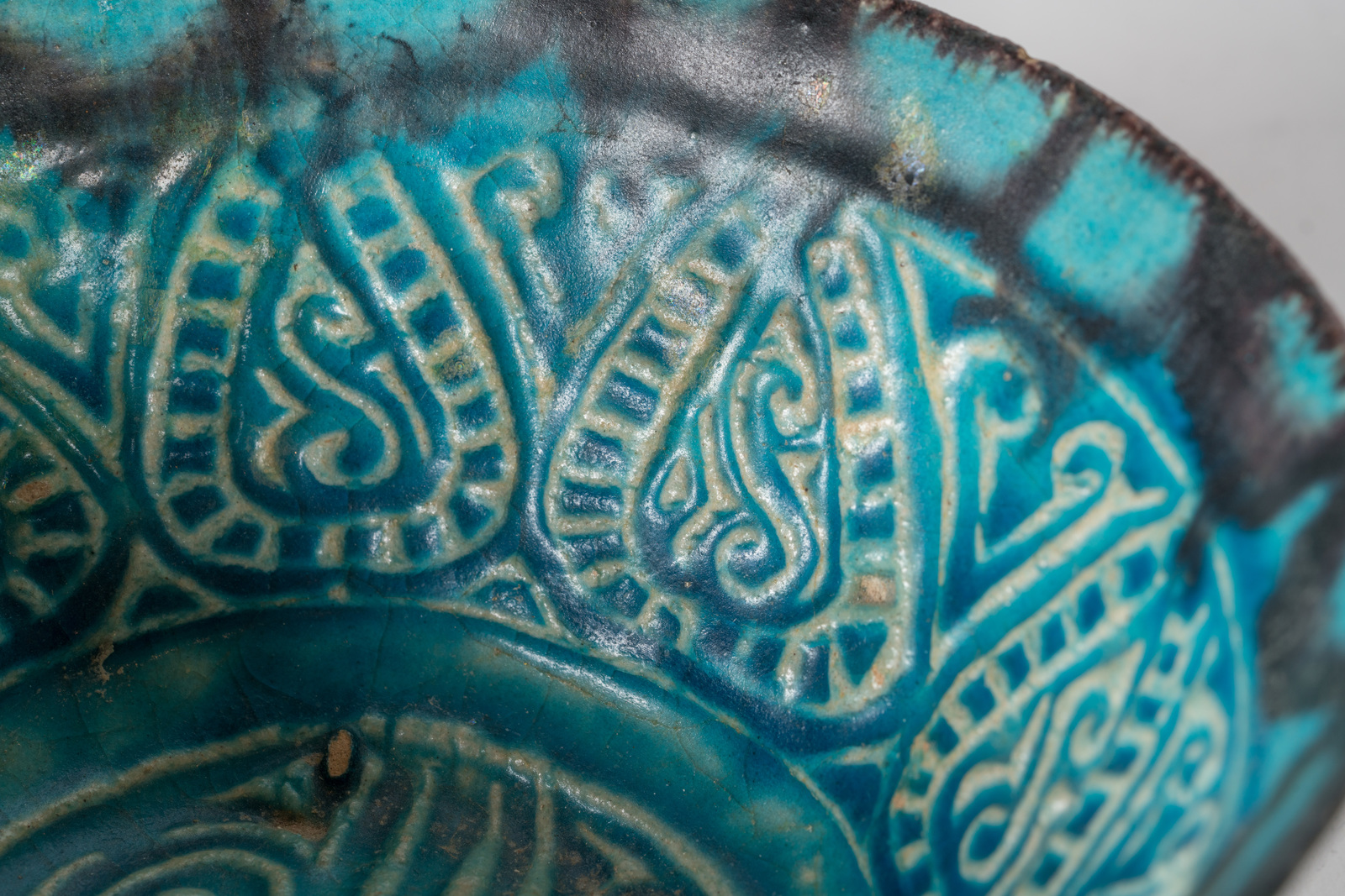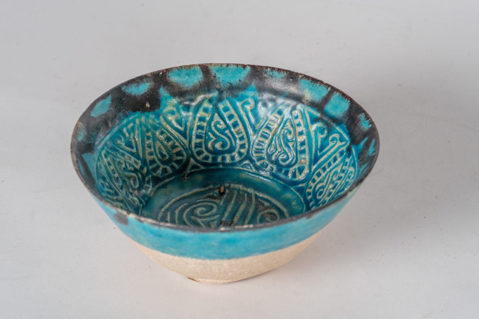 Islamic Art A turquoise glazed Bamiyan moulded pottery bowl
