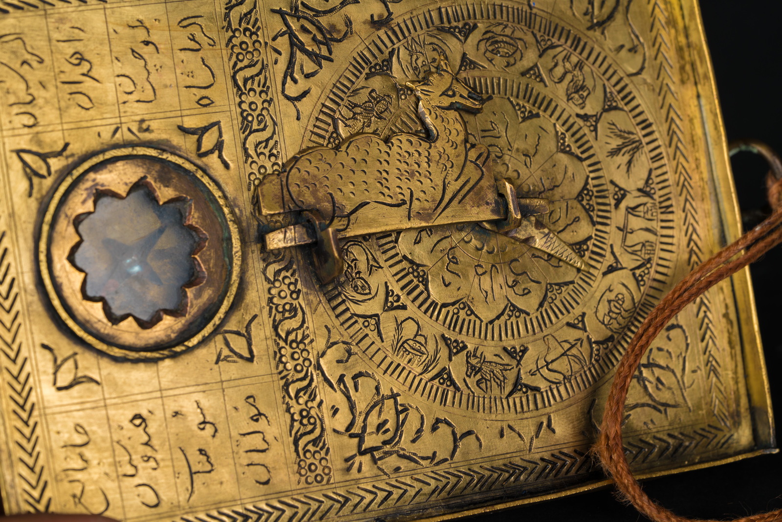 Islamic Art A brass astrolabe engarved with astrological signs and symbols Iran, 19th century . . Cm 10,00 x 14,50 x 1,50.