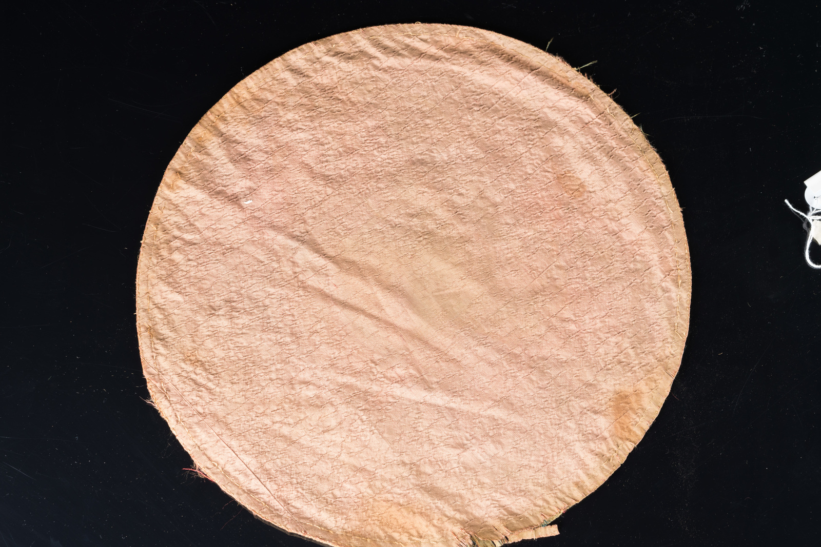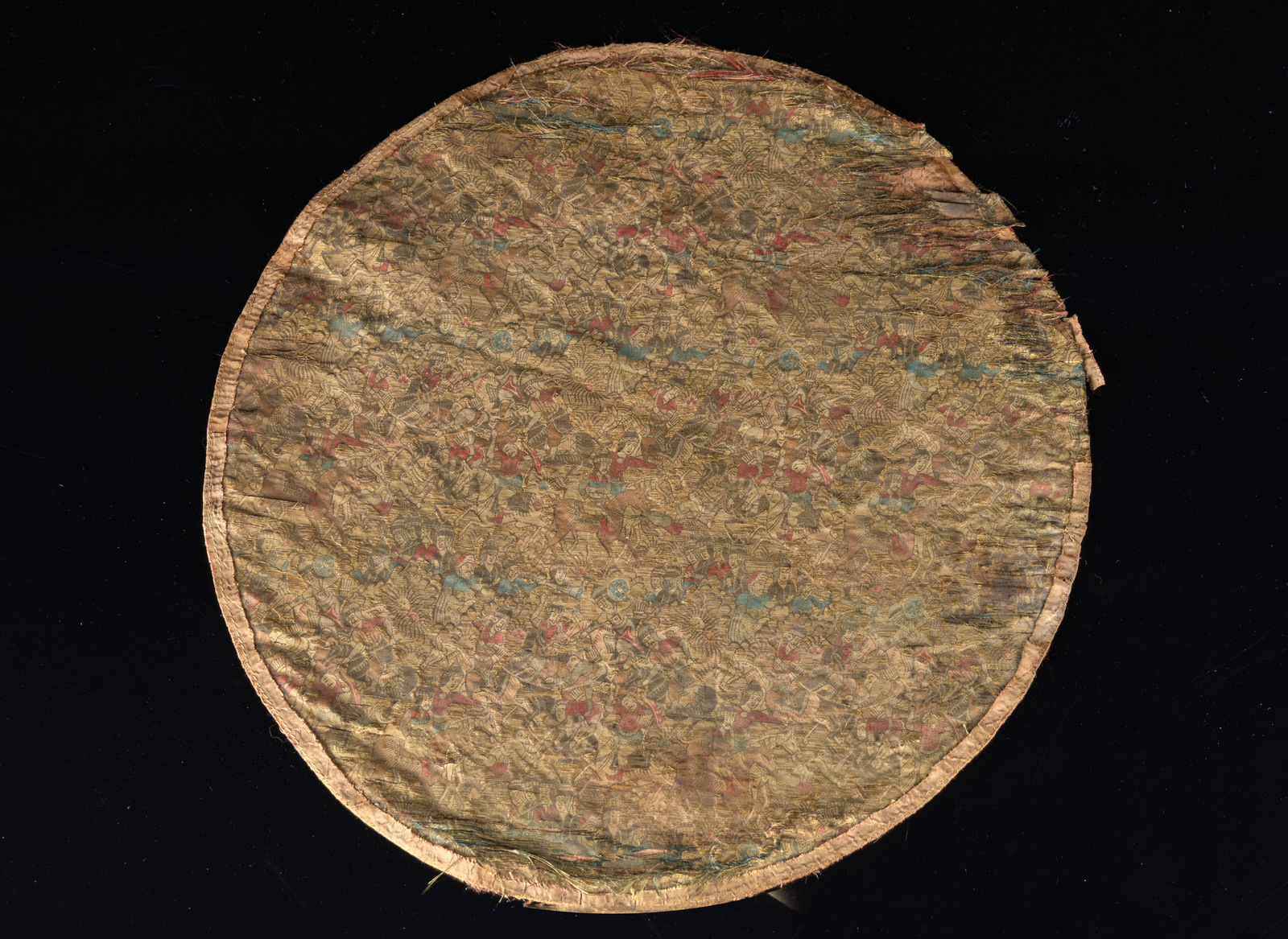 Islamic Art A round gold thread embroidered fabric decorated with battle scenes