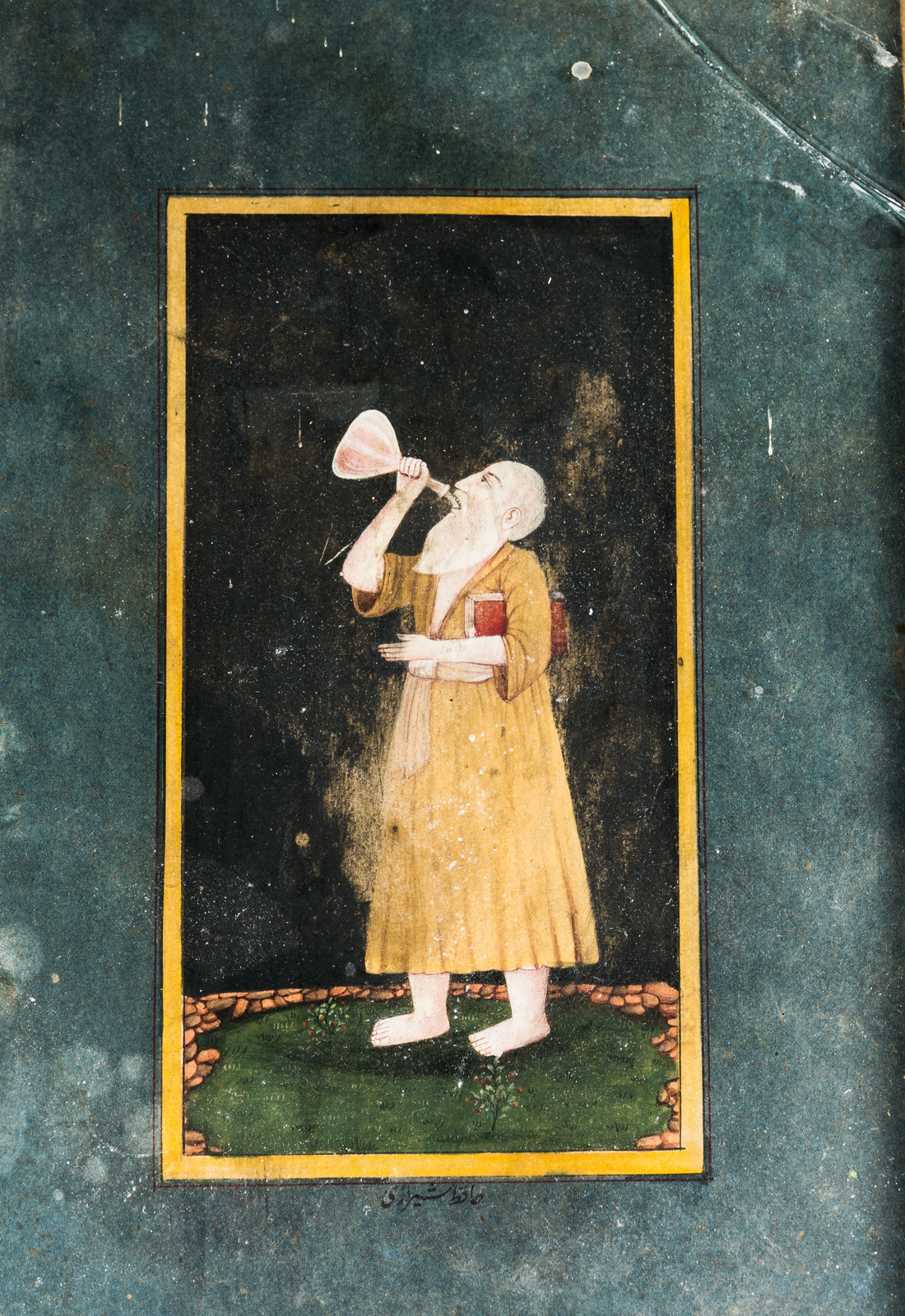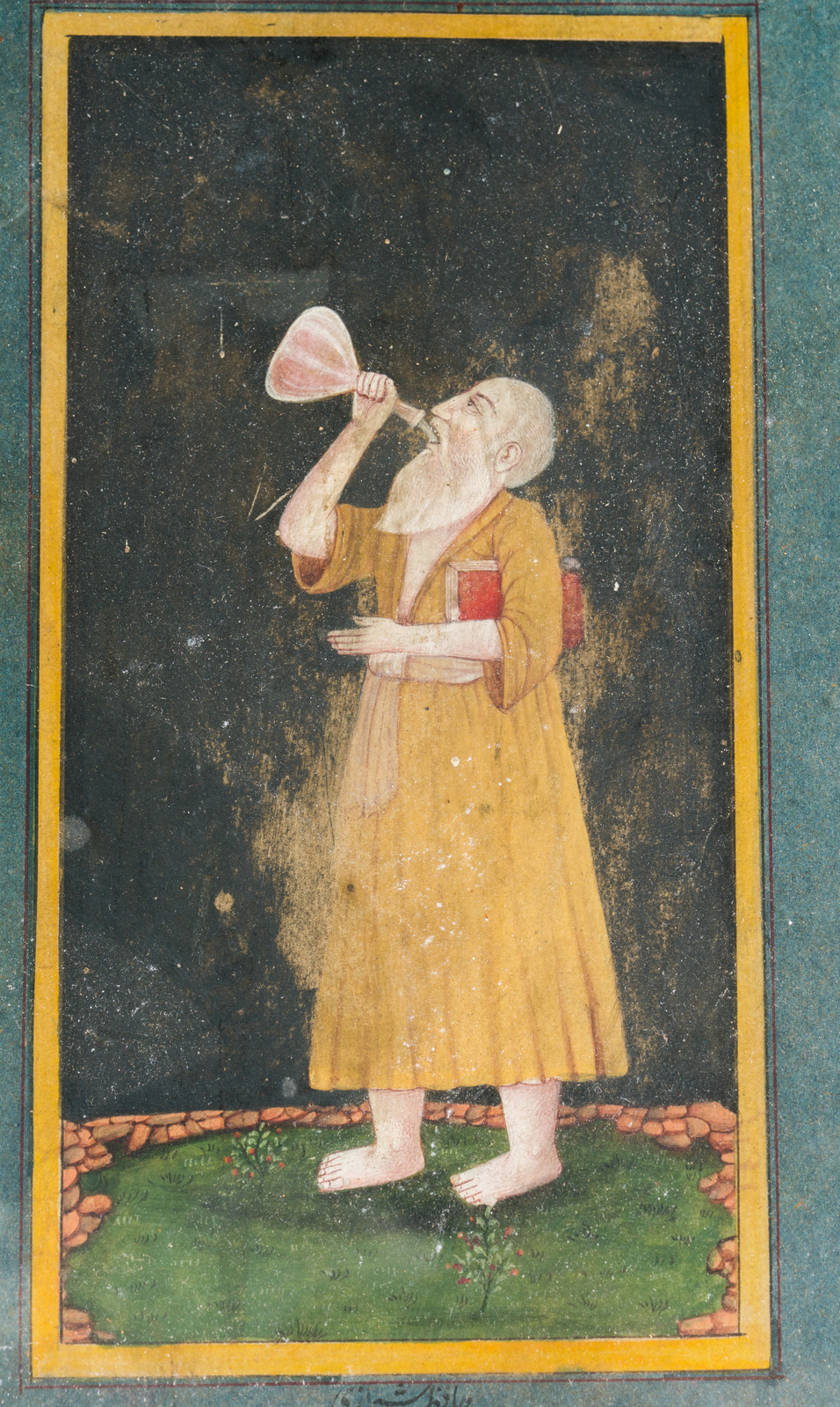 Indian Art Painting depicting a sufi drinking and bearing a Persian inscription