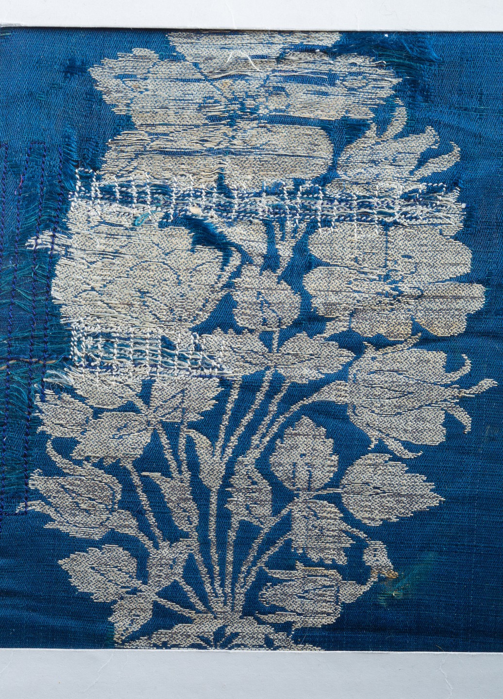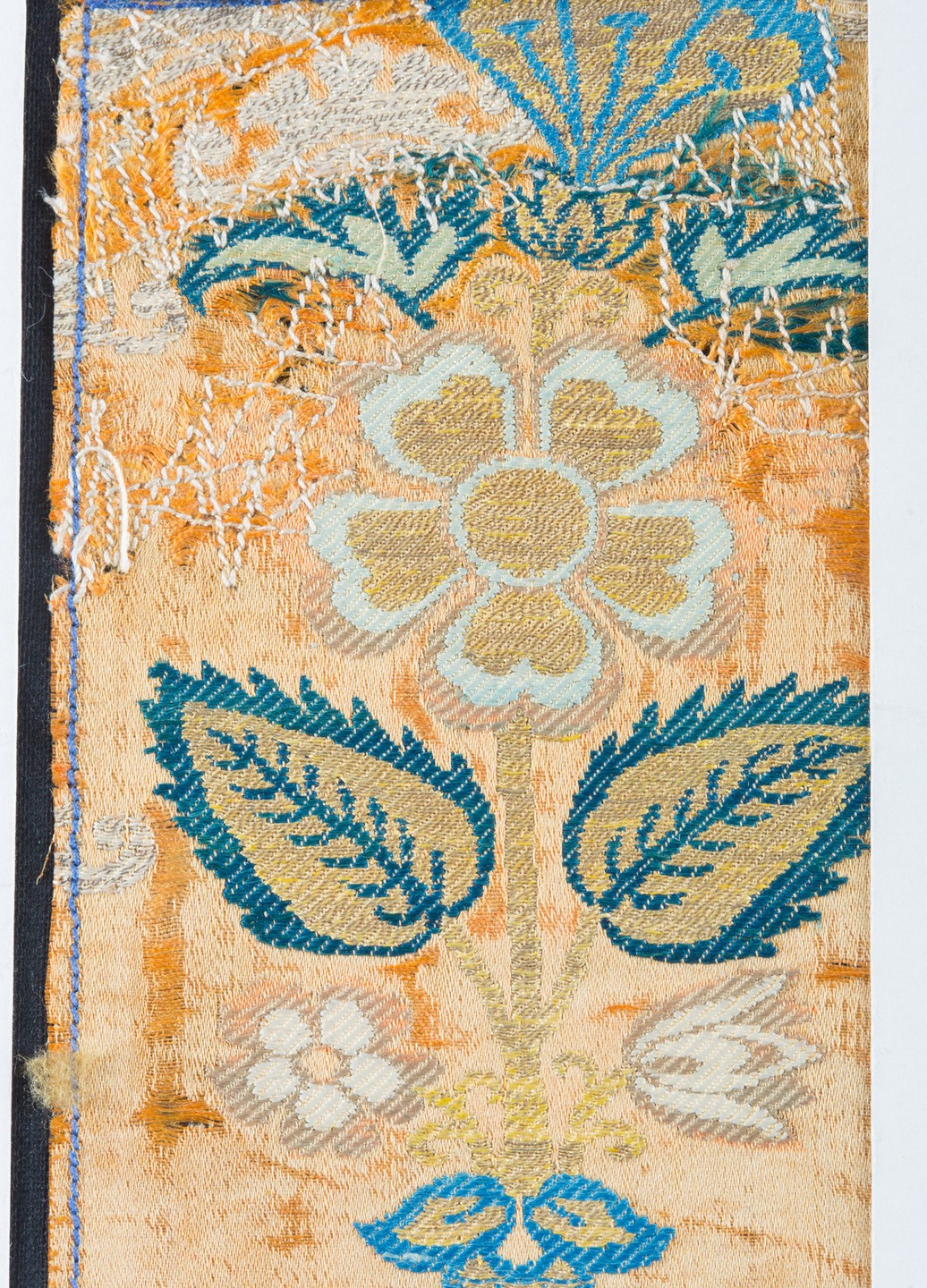 Arte Indiana Frammenti di tessuti floreali in seta ricamata India, XVII...