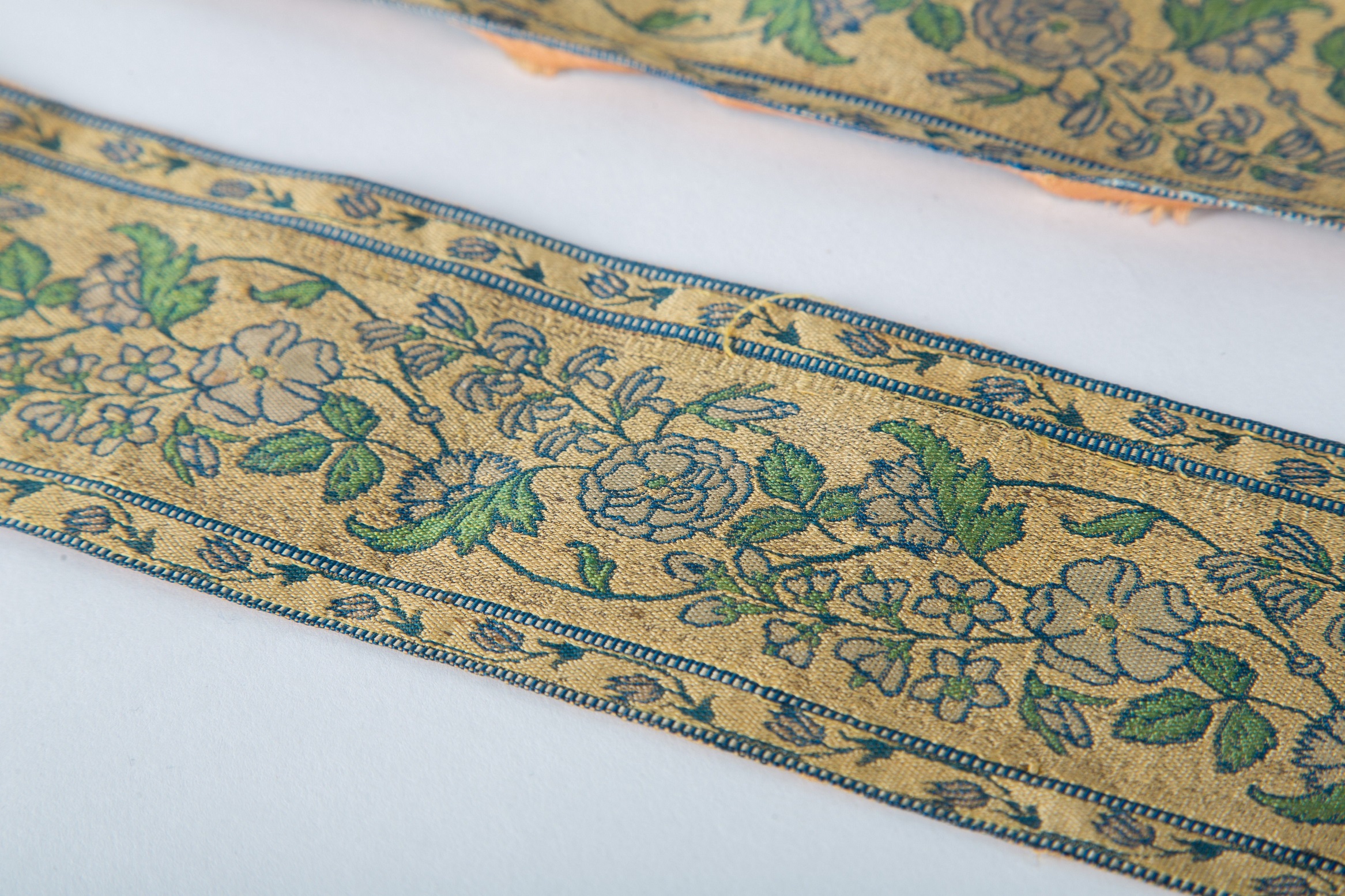 Arte Indiana Frammenti di tessuti floreali in seta ricamata