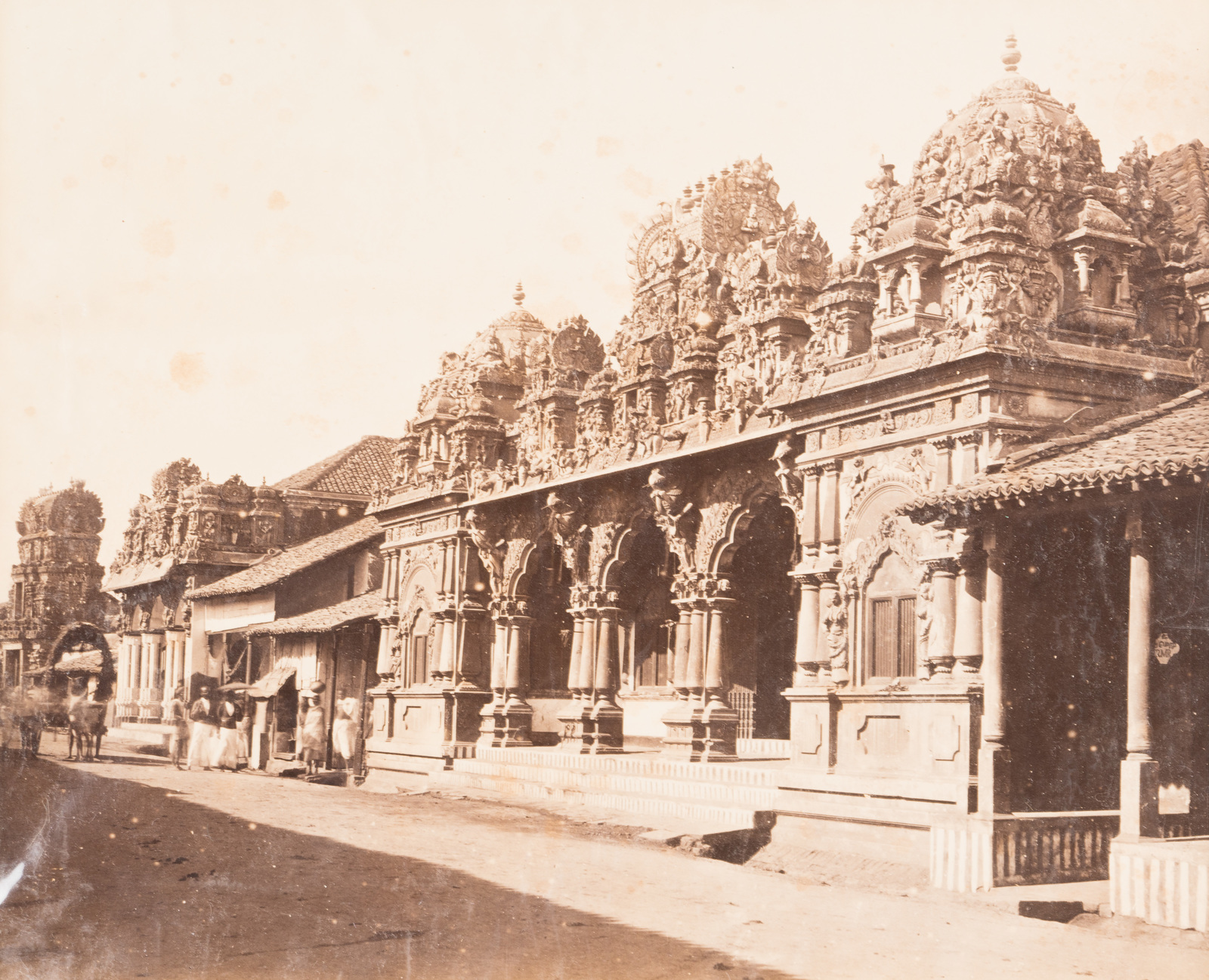 . . Cm 29,00 x 22,00. Including: the Red Fort in Delhi, a lady with a veil signed by Arnoux lower left, a hindu temple, a temple in Benares (signed Boume 1172), other five views of buildings in Delhi, Lahore and Bombai signed with the same name, and another hindu temple signed by W.L.H. Skeen and co.
