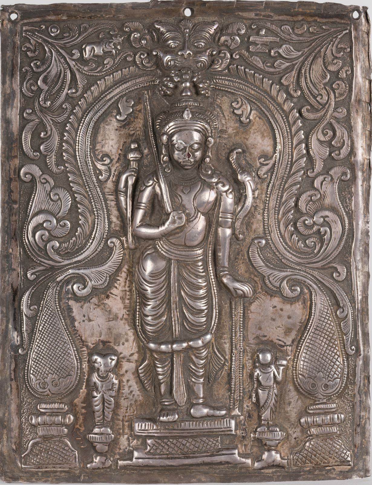 Indian Art A silver embossed plaque depicting Virabhadra