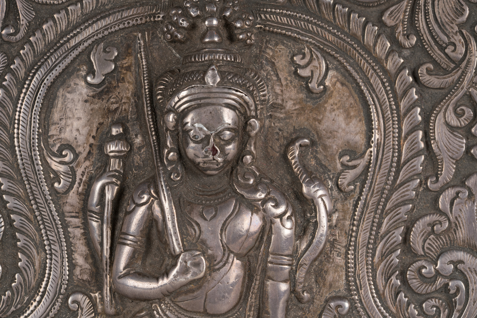 Arte Indiana Placca in argento sbalzato raffigurante Virabhadra