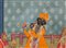 Arte Indiana Miniatura raffigurante Krishna che suona il flauto Pigmenti...