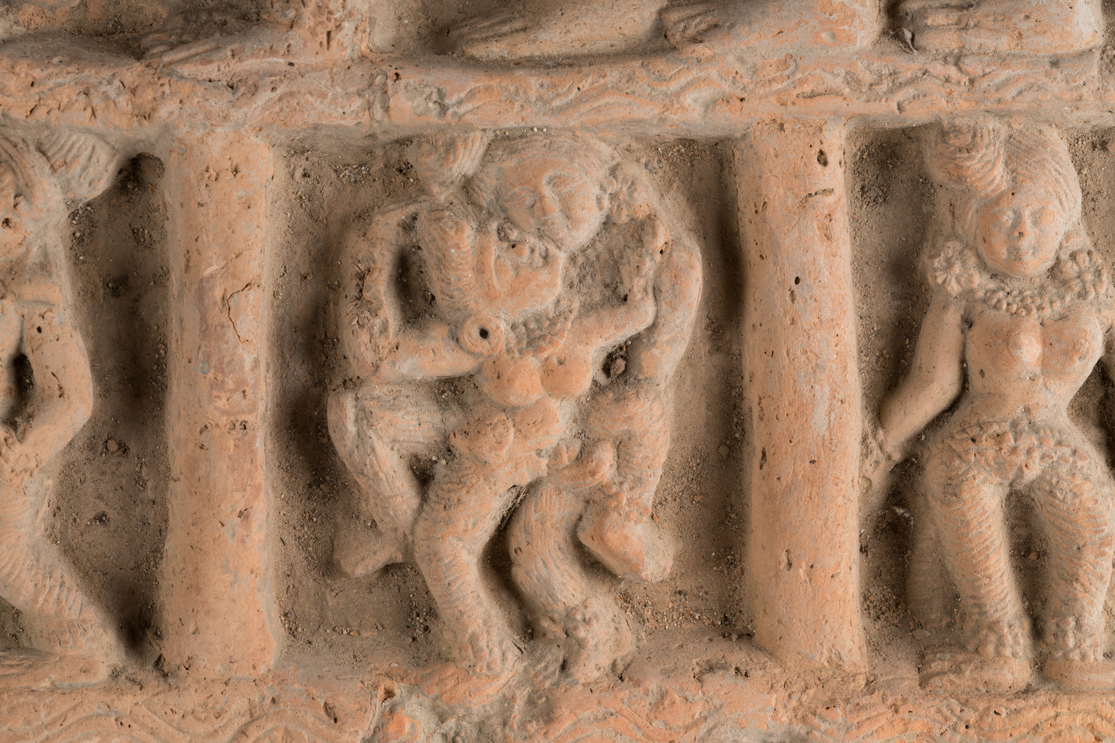 Indian Art An earthenware sculpted panel depicting an erotic scene (mithuna)